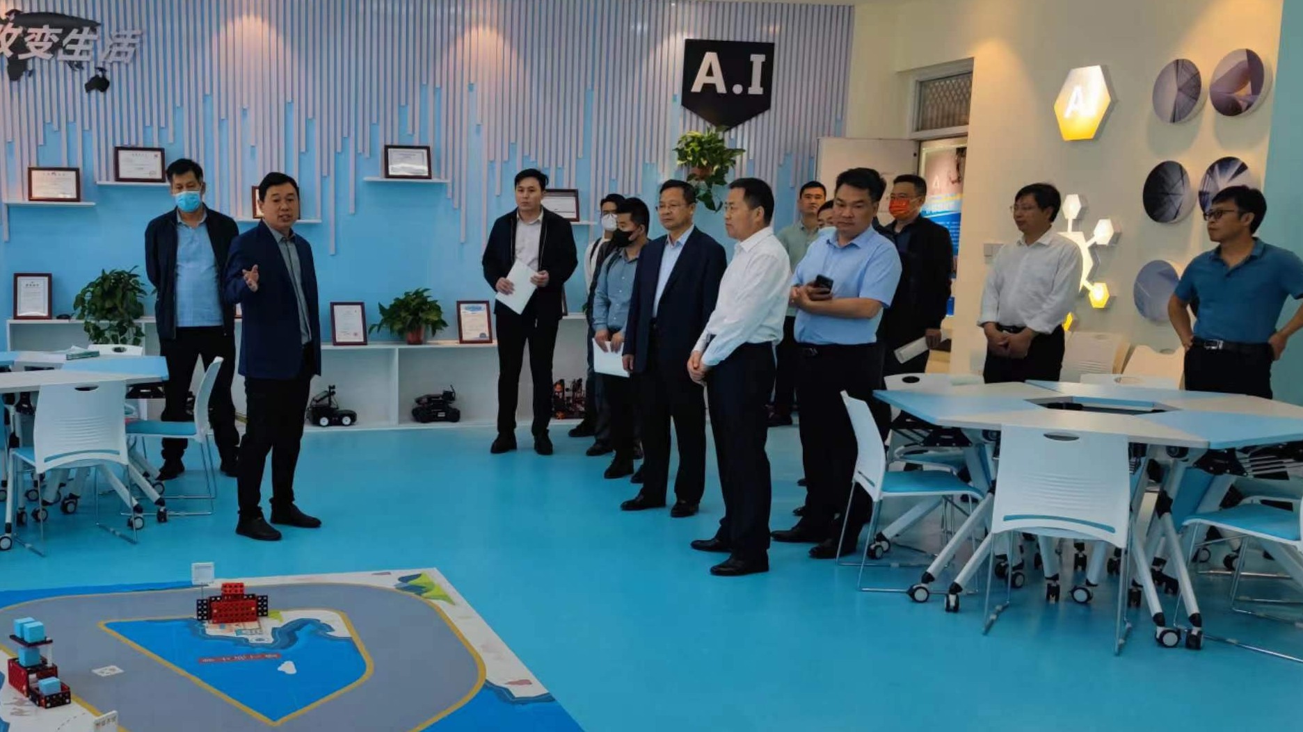 调研组先后实地考察了信息技术学院、测绘与规划学院人工智能实验室、曙光大数据学院、大数据创新人才培训基地、河南省农业遥感大数据发展创新实验室等实训平台。考察过程中,王磊一行认真听取了必赢官网在大数据人才培养和数据资源开发利用等方面的情况。
