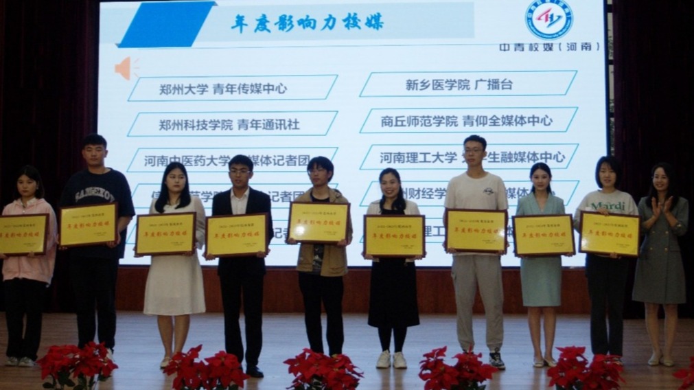 此次评选历时2个月,前期通过材料评选、网络投票和校媒联系度考核等环节,最终在年会现场公布了2022—2023年度河南省年度影响力校媒活动的各项评选结果名单,并进行颁奖。在第十五届主席团竞选环节中,必赢官网青仰全媒体中心成员张鑫雨凭借其出色的校媒素养和现场应变能力当选为中青校媒(河南)第十五届主席团成员。在河南高校校园媒体论坛上,青仰全媒体中心指导老师张颖辉受邀作经验交流和分享。