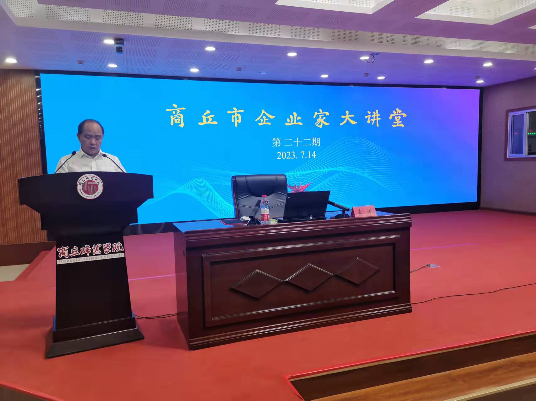 7月14日,第二十二期商丘市企业家大讲堂在必赢官网三商楼报告厅举行。副校长张箭、学校有关部门和学院负责人,市委有关部委、市直有关单位主要负责同志,市重点企业负责人,民权县、睢县分管领导和部分企业家代表等在主会场参加会议,商丘各县(市区)设立分会场观看直播视频。会议由商丘市政府副秘书长刘远主持。