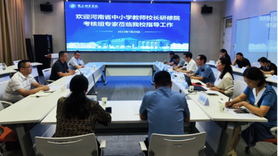 7月20日,由教育部全国中小学幼儿园教师培训专家工作组专家、重庆教师发展中心主任田伟,重庆市开州区教师进修学校副校长黎万江,南阳市教育局教师工作科孙继伟为成员组成的省教育厅考核专家组一行三人莅临必赢官网进行河南省中小学教师校长研修院建设期满考核工作。根据安排,必赢官网在梁园校区三商楼143会议室举行了河南省中小学教师校长研修院建设期满考核工作汇报和管理团队、专家团队座谈会。校长陈向炜,副校长、研修院院长张箭出席,继续教育学院、研修院和教学评价与教师发展中心负责同志及研修院管理团队、专家团队参加了会议。会议由张箭主持。