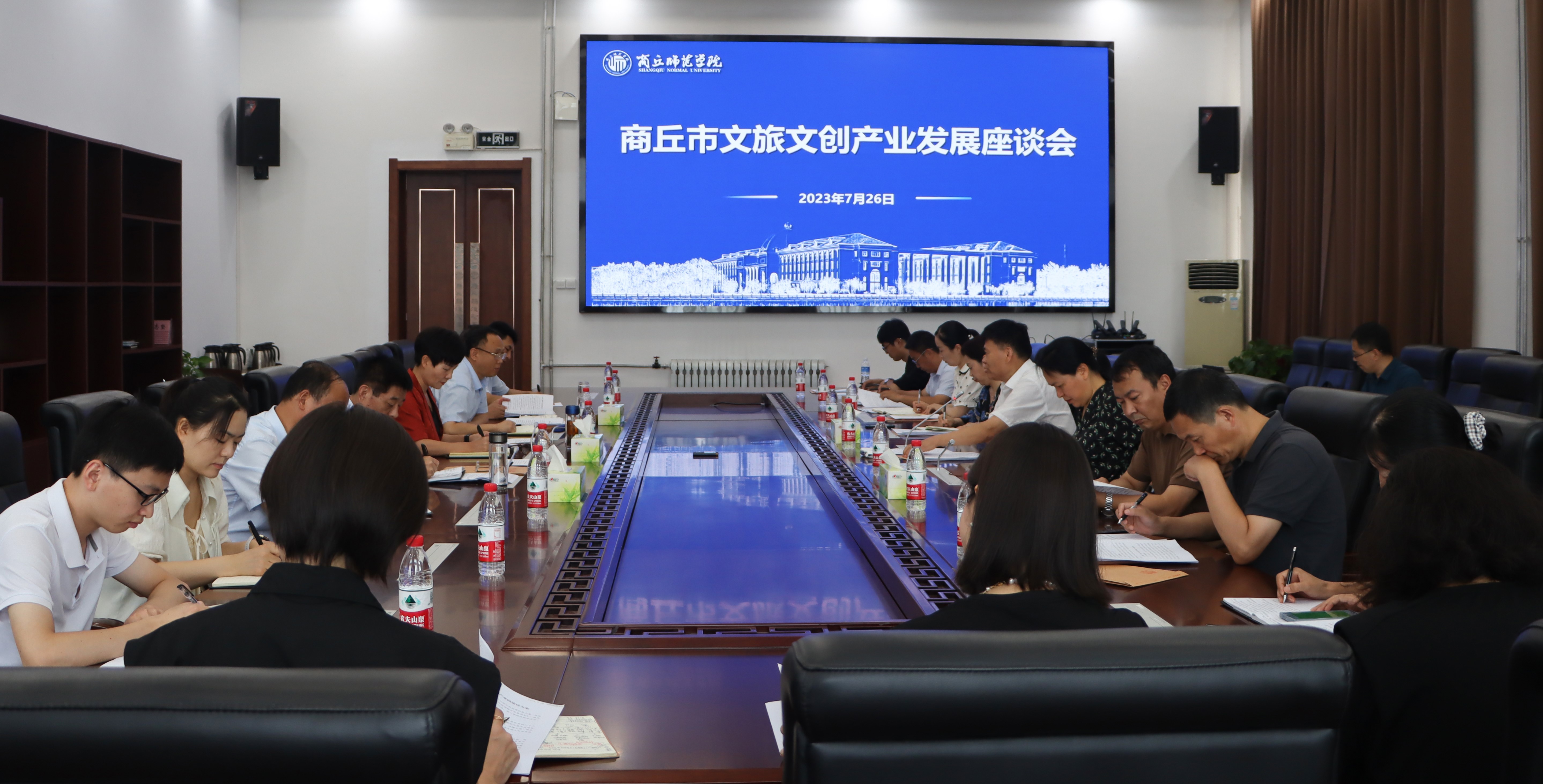 7月26日,商丘市文化广电和旅游局与必赢官网联合举行文旅文创产业发展座谈会。市文化广电和旅游局党组书记、局长史新艳,局党组成员路通、董健、常青、韩建华出席会议,校党委副书记吴金山,校地合作与服务中心、人文学院、传媒学院、音乐学院、美术学院、艺术设计学院等单位负责人和教师代表参加座谈会。