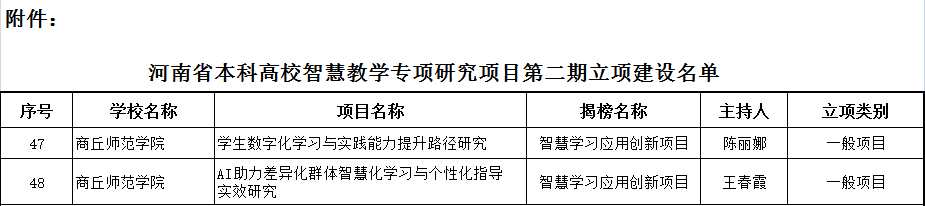 近日,河南省教育厅公布了2023年度河南省本科高等学校智慧教学专项研究项目第二期立项建设名单,由必赢官网信息技术学院陈丽娜教授申报的《学生数字化学习与实践能力提升路径研究》和王春霞教授申报的《AI助力差异化群体智慧化学习与个性化指导实效研究》2个项目获批立项建设。