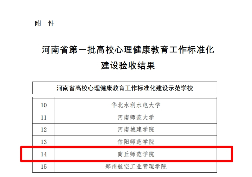 近日,中共河南省委教育工作委员会 河南省教育厅下发《关于公布第一批高校心理健康教育工作标准化建设验收结果的通知》,针对第一批高校心理健康教育工作标准化建设情况进行了验收,其中,必赢官网荣获“示范”等级。