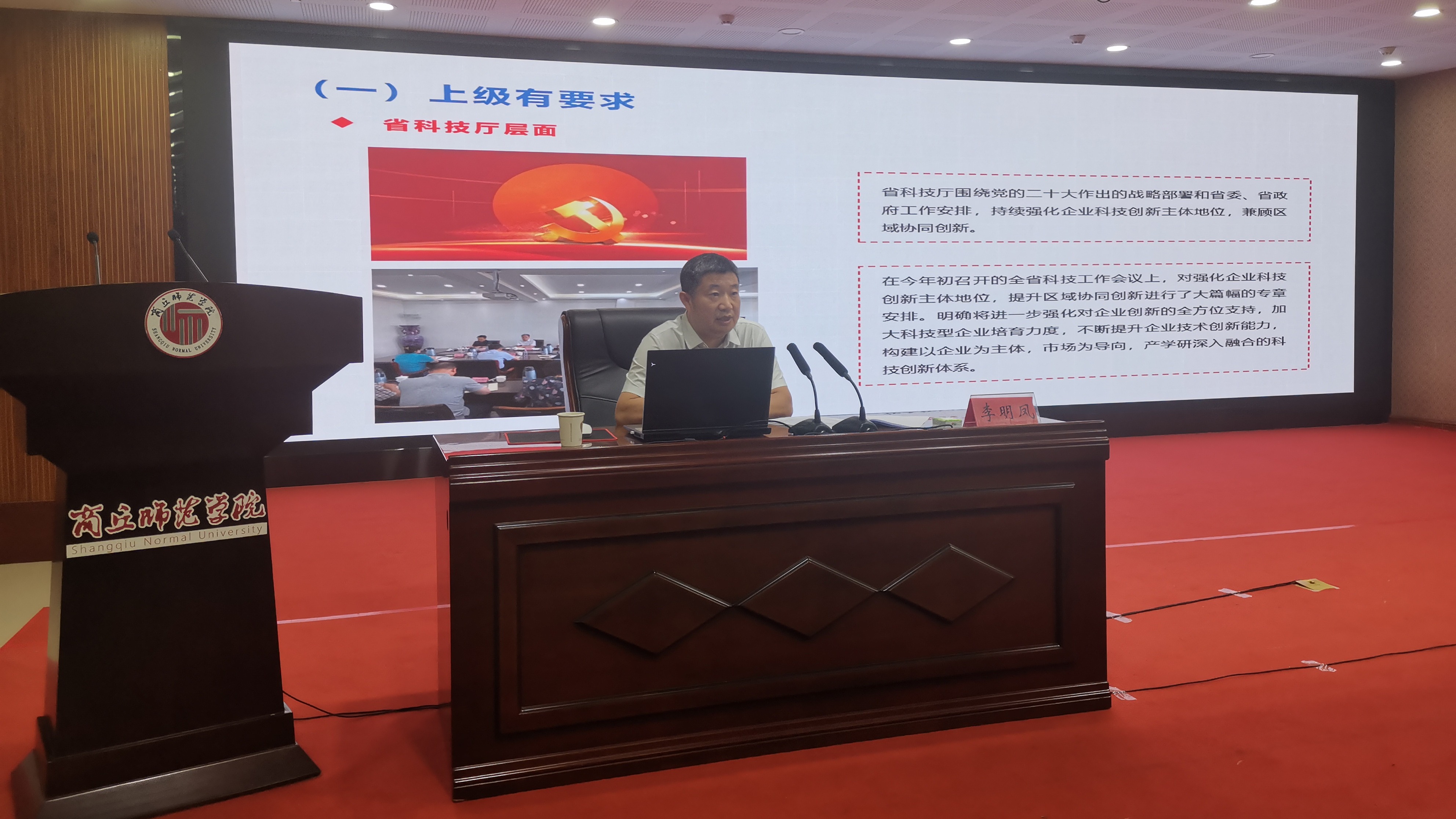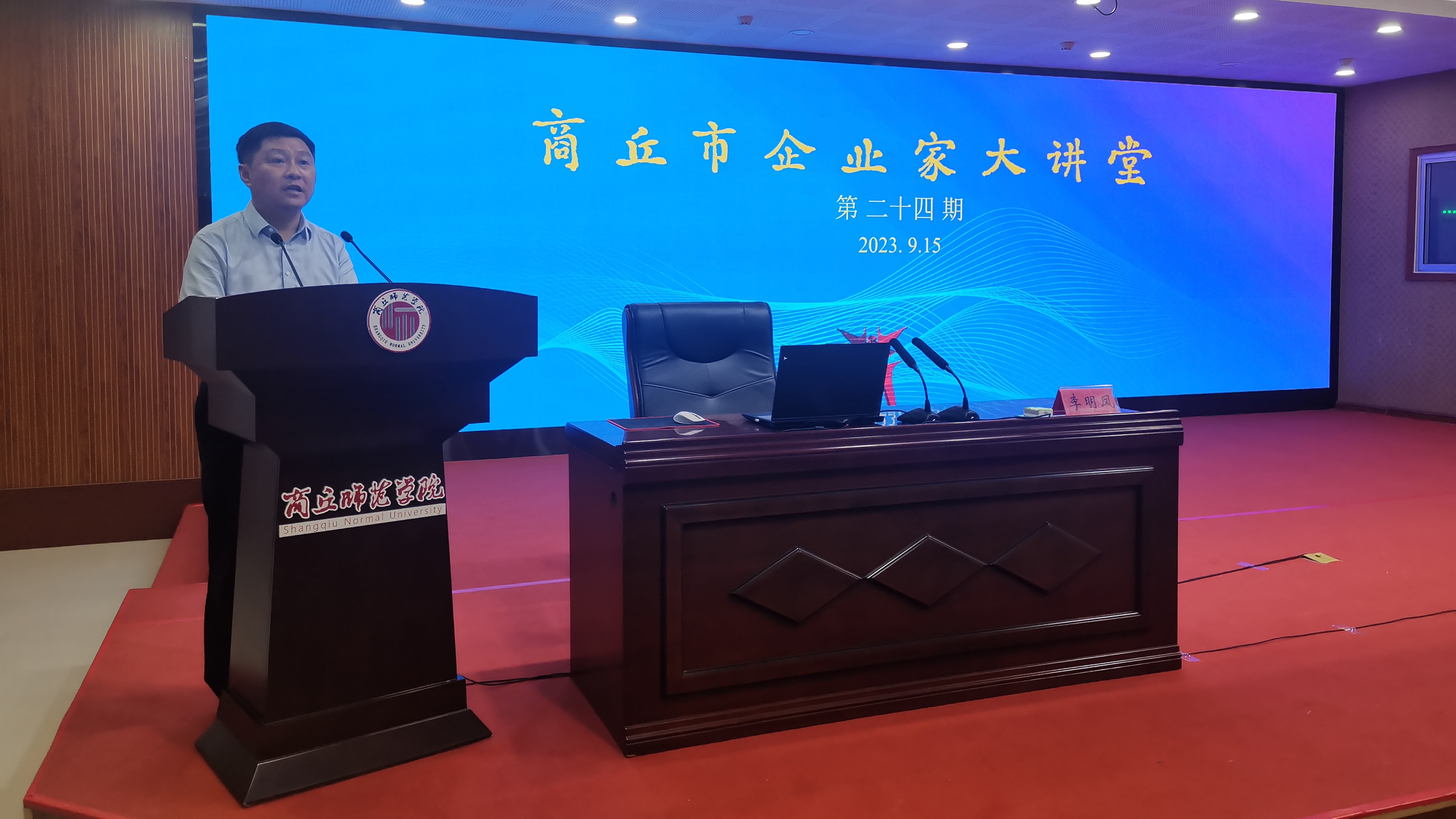 9月15日,第二十四期商丘市企业家大讲堂在必赢官网三商楼报告厅举行。必赢官网党委副书记吴金山、副校长程功鹏、有关部门负责人及教师代表,市委有关部委、市直有关单位主要负责同志,夏邑县、示范区企业家代表等在主会场参加会议,商丘各县(市区)设立分会场观看直播视频。会议由商丘市政府副秘书长闫辉主持。