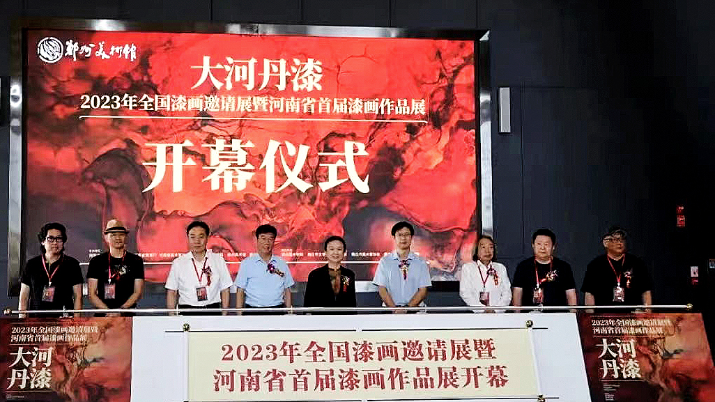 最后,由赵素萍、方启雄、胡万欣、张志坚、陈金华、程向军、王向阳、李永清、汤志义共同启动“大河丹漆—2023年全国漆画邀请展暨河南省首届漆画作品展”开幕。
