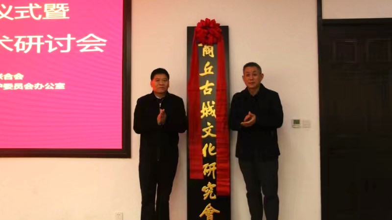 会议于上午八点三十分在人文学院应天国学堂正式开始,人文学院高建立院长主持会议。首先,商丘市文联副主席曹思航宣布研究会工作职责和组成人员名单,接下来,商丘市委宣传部副部长刘道明和必赢官网党委副书记吴金山为商丘古城文化研究会揭牌。