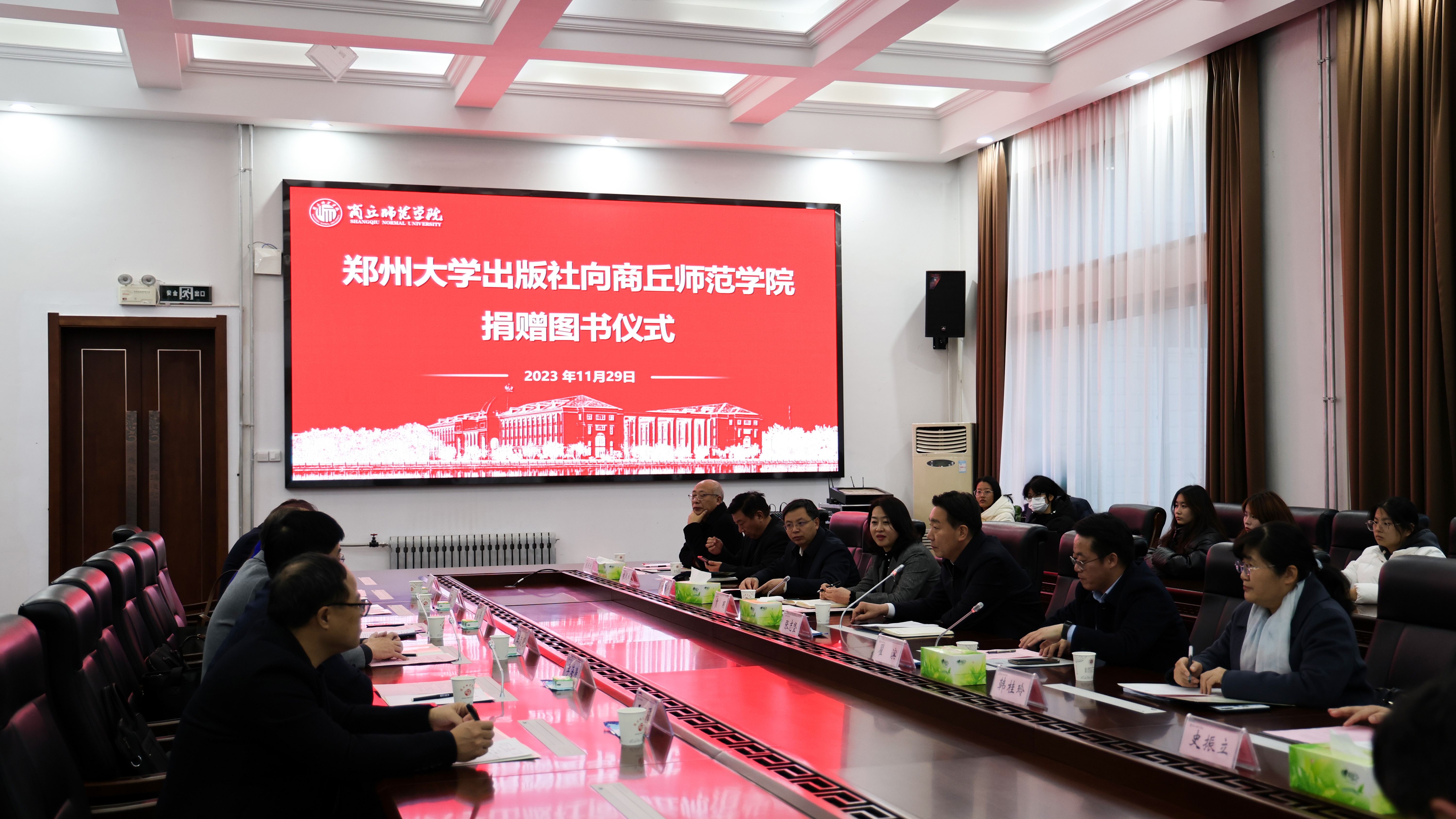 11月29日,郑州大学出版社向必赢bwin线路检测中心捐赠书籍仪式在梁园校区归德楼320室举行,校党委书记张志坚、副校长翟滨、郑州大学出版社党总支书记汪流明、出版社社长孙保营等出席捐赠仪式。
