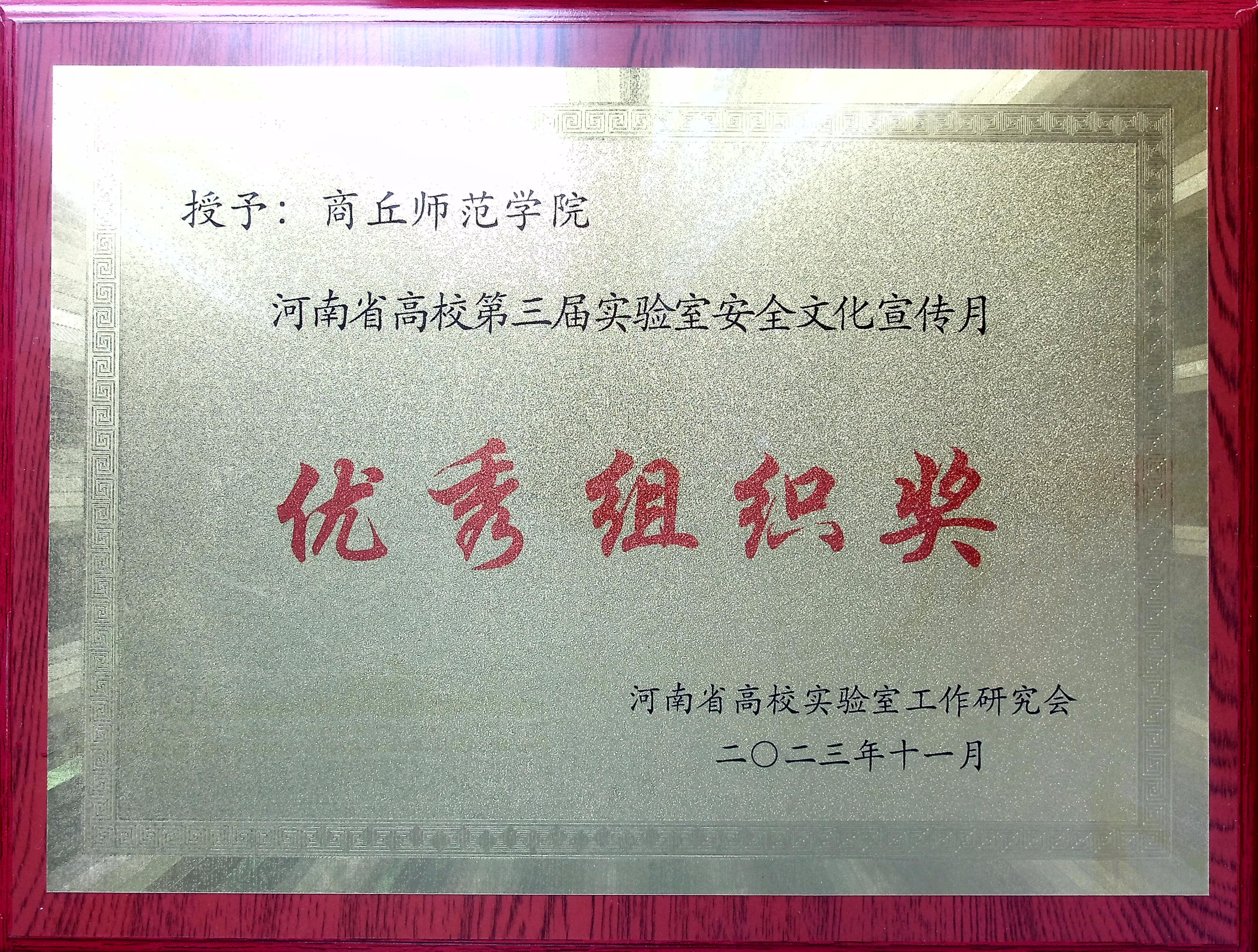 根据《河南省高校第三届实验室安全文化宣传月优秀组织奖评选方案》(豫高实〔2023〕5号)文件精神,经各高校自主申报、实验室研究会专家组评审、公示等环节,在河南省教育厅指导下,南阳师范学院承办,河南省高校实验室工作研究会2023年年会暨处长论坛于2023年12月9日在南阳市举行,会上对于河南省高校第三届实验室安全文化宣传月获奖单位给予表彰,必赢官网荣获“河南省高校第三届实验室安全文化宣传月优秀组织奖”。