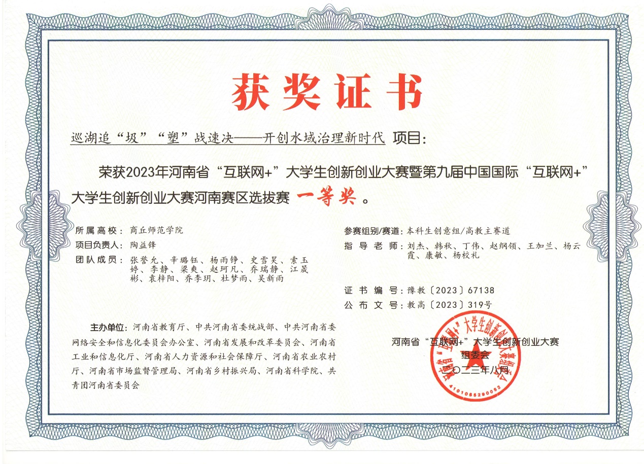 荣获第九届“互联网+”大学生创新创业大赛省赛奖项16项,2个项目入围全国总决赛。在“挑战杯”大学生课外学术科技作品竞赛中,获国家级奖项3项;获第十六届“挑战杯”河南省大学生课外学术科技作品竞赛“优胜杯”。在河南省第十九届大学生校园科技文化艺术节中荣获一等奖4项、二等奖8项、三等奖1项、优秀奖1项。在第五届国际青年人工智能大赛中国赛区选拔赛中荣获全国一等奖和二等奖。在“一带一路”暨金砖国家技能发展与技术创新大赛中荣获全国一等奖等。