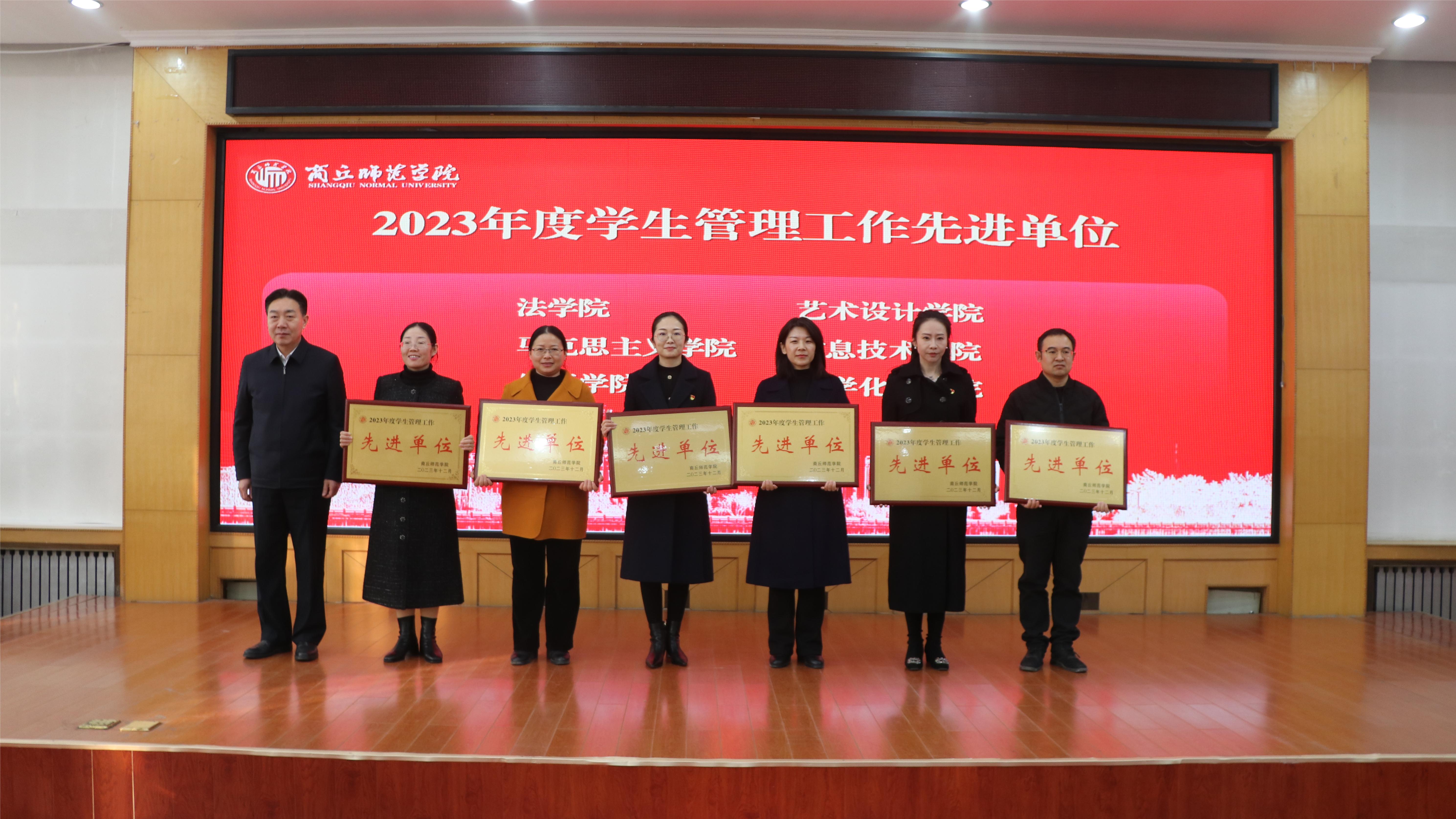 大会在庄严的国歌声中拉开序幕,表彰大会回顾了必赢官网2023年度学生管理工作,王晓征和学生处负责同志分别宣读获奖单位及获奖个人表彰决定。校领导为获得2023年度“学生管理工作先进单位”等十余项荣誉的集体和个人颁奖并合影留念。获奖学院代表外语学院党委副书记王頔、获奖个人代表马克思主义学院辅导员戚瑞静作交流发言。
