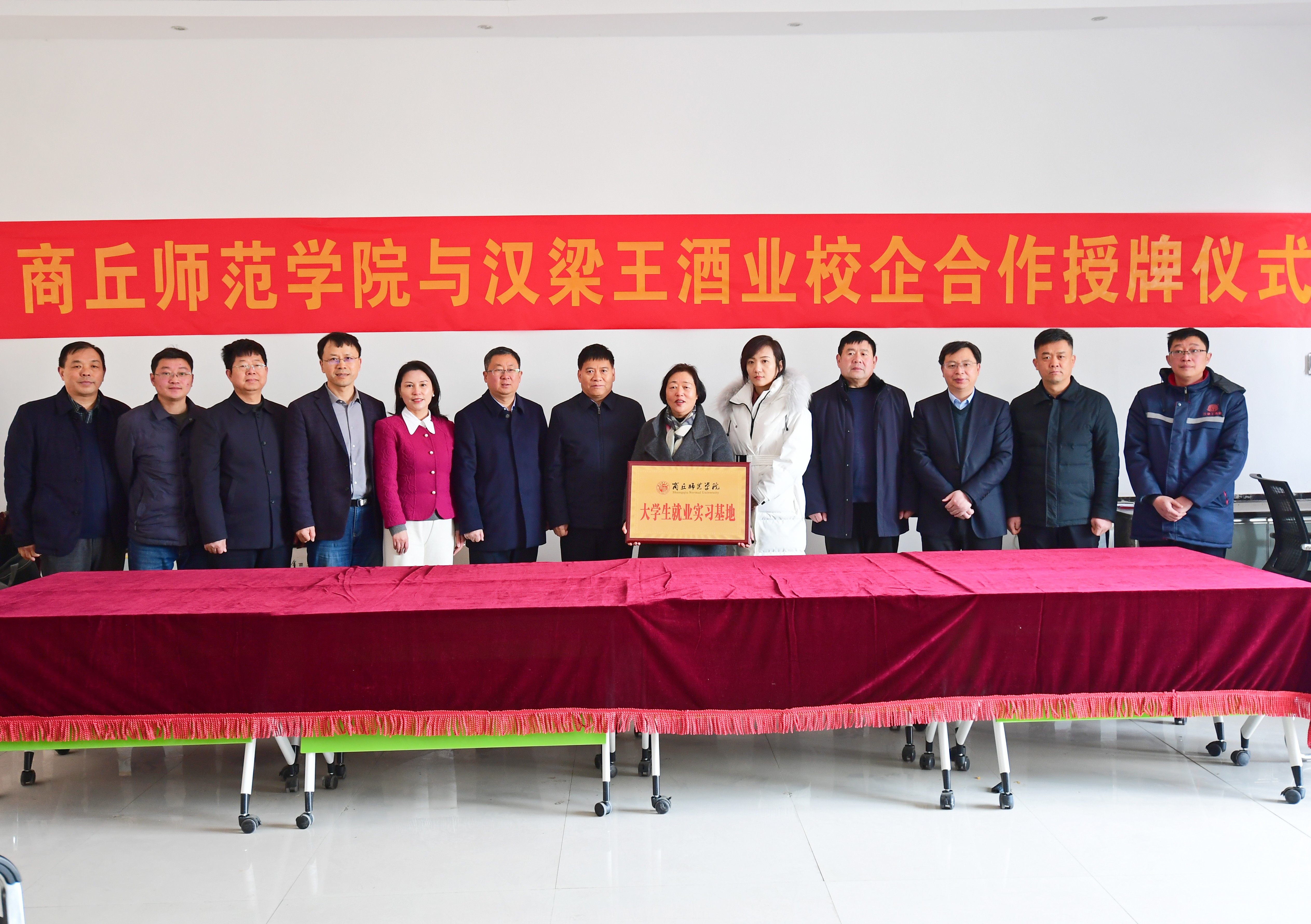 必赢bwin线路检测中心、汉梁王酒业有限公司签订了合作协议。吴金山和王月英为研发中心、实习实训基地揭牌。