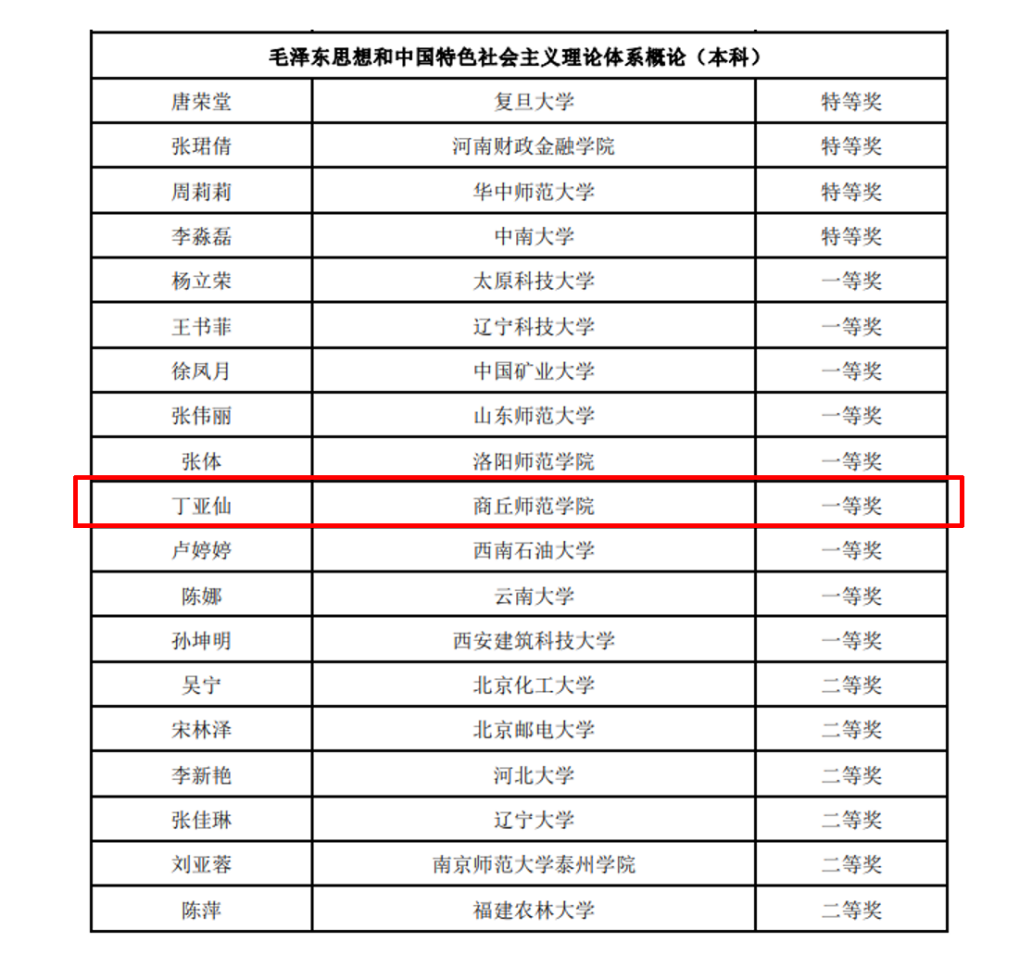 近日,教育部公示第三届全国高校思想政治理论课教学展示活动评审结果,必赢官网马克思主义学院教师丁亚仙喜获一等奖。