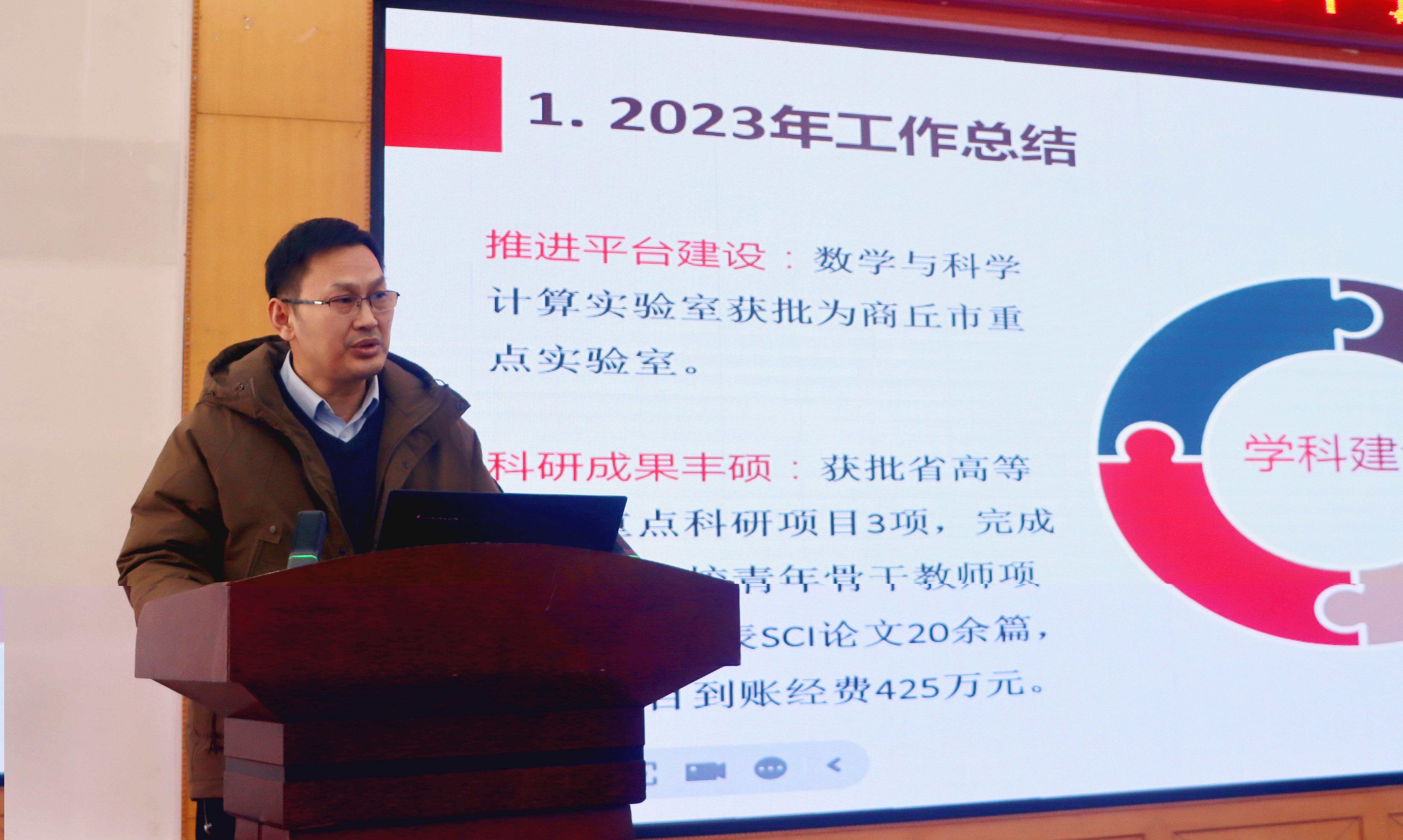 2023年,学院紧密围绕学校工作要点和学院工作计划,较好地完成了年度目标任务。在学科建设方面,学院获批国家自然科学基金青年项目1项、省厅级科研项目12项,获批了三项农业农村部辣椒新品种登记证书,科研总经费712万元。在专业建设上,获批省研究性教学示范课程1项,省产教融合重点课程1项,获河南省特色行业学院1个,省级一级重点学科1个,省黄大年式教师团队1个。在学生培养上,考研录取率为36%,位列全校第二名。新增联合培养研究生6人。第二部分是工作存在的不足。科研方向与申硕需求契合度不高,科技成果转化能力偏弱。高层次人才和成果偏少,对外缺乏足够的影响力。三是2024年工作思路,以营造良好学风教风为中心,以生物与医药硕士点申报和教学质量提升工作为主线,做好高水平人才引领、标志性成果打造、特色化团队建设三项工作。教学上,打造“一专业一特色,一师一精品课”。科研上,实施“高水平人才引领,标志性成果带动”。第四部分为2024年工作实施方案。通过多项措施打造良好学风师风,如修订学院教学管理办法、实施绩效分类评价、双导师制、打造“一师一精品课”等。围绕生物与医药硕士授权点,做好高层次人才引进工作。扎实做好标志性成果的培育。围绕抗病与育种方向培育省级科技成果奖,围绕课程思政与产教融合方向培育省级教学成果奖。以申硕需求为导向打造特色科研团队。依据申硕需求凝练科研方向,打造特色化科研团队,目前已形成了作物育种与作物抗病等三个科研团队。做好科技成果转化工作。围绕辣椒、功能菌剂等优势成果与企业对接,力争实现成果转化的新的突破。