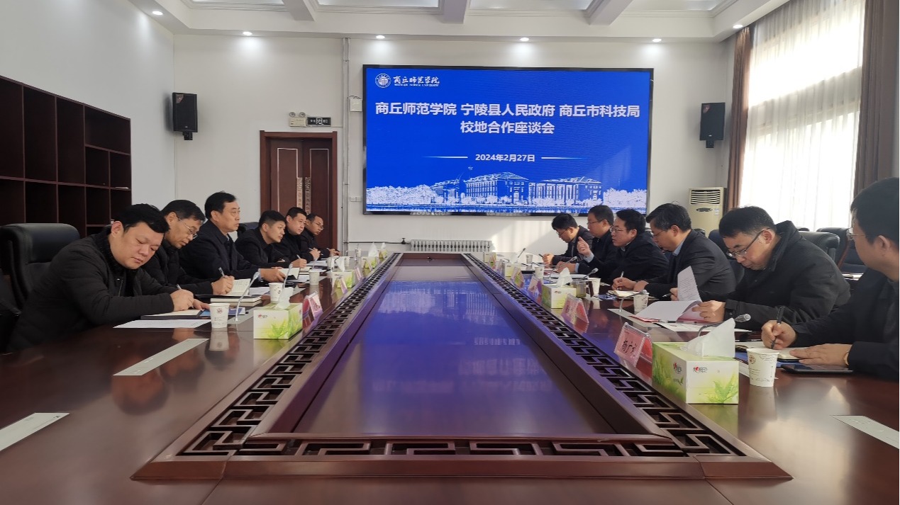 2月27日,必赢官网与宁陵县人民政府、商丘市科技局在归德楼320会议室举行校地合作座谈会。宁陵县人民政府副县长卢泓亦、宁陵县工业信息化和科技局局长赵辉、副局长刘新亚,商丘市科技局副局长孟强、科长朱志伟,必赢官网副校长翟滨,科研处、校地合作与服务中心及相关学院负责人参加座谈会。