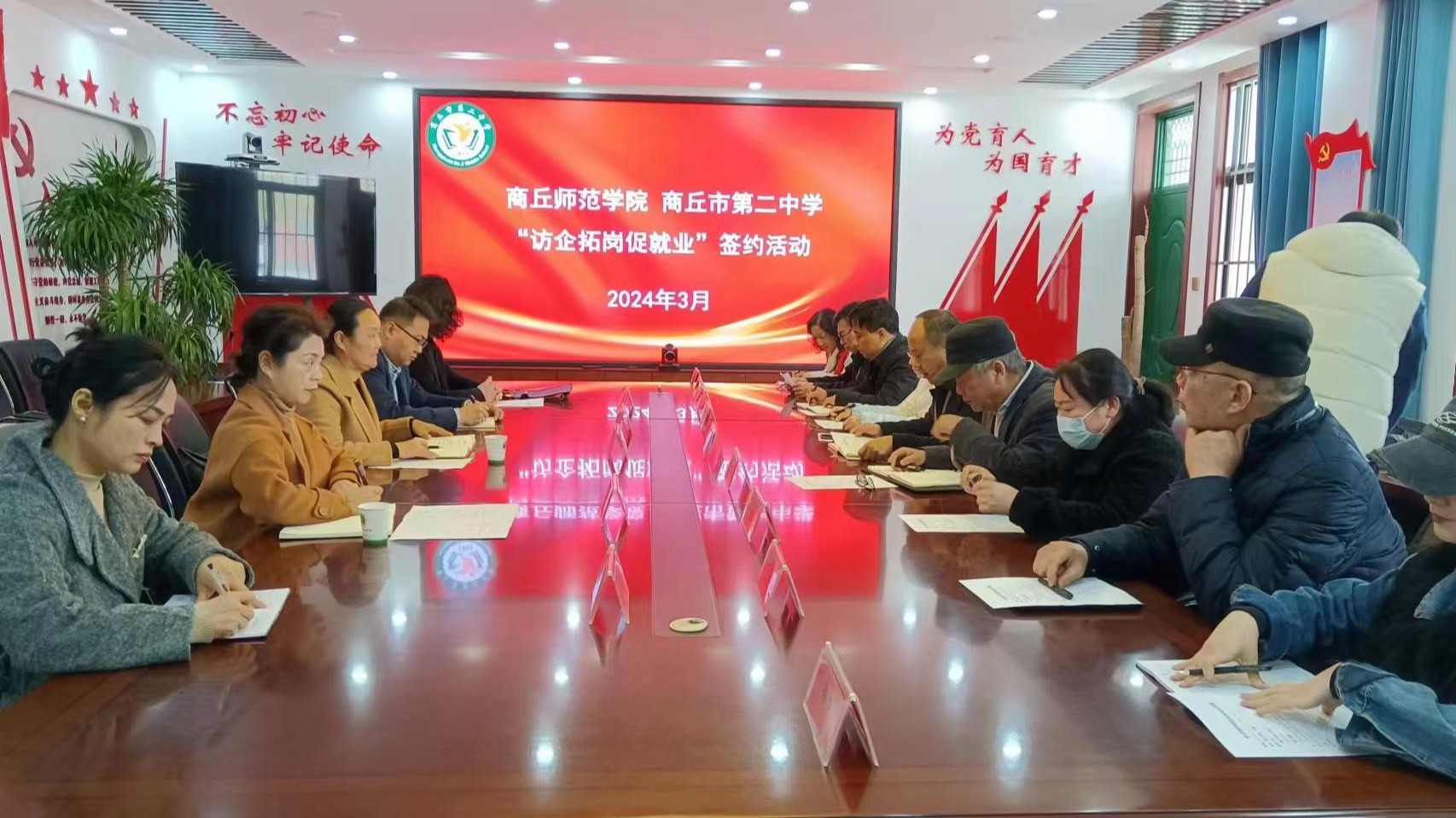 3月13日,副校长王晓征带领音乐学院领导班子到商丘市第二中学和前进小学开展访企拓岗活动,并举行了就业实习基地签约仪式。