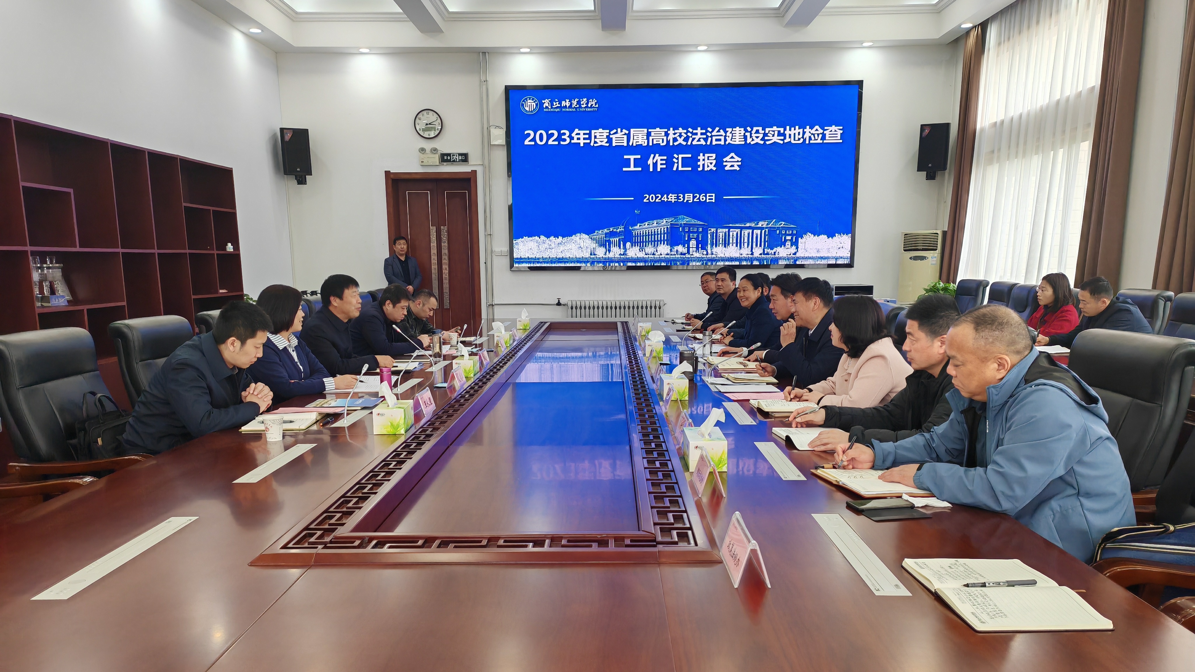 3月26日,省教育厅高校法治建设工作检查组对必赢官网2023年度法治建设工作进行实地检查。校党委书记张志坚、副书记吴金山、副校长王晓征出席会议。