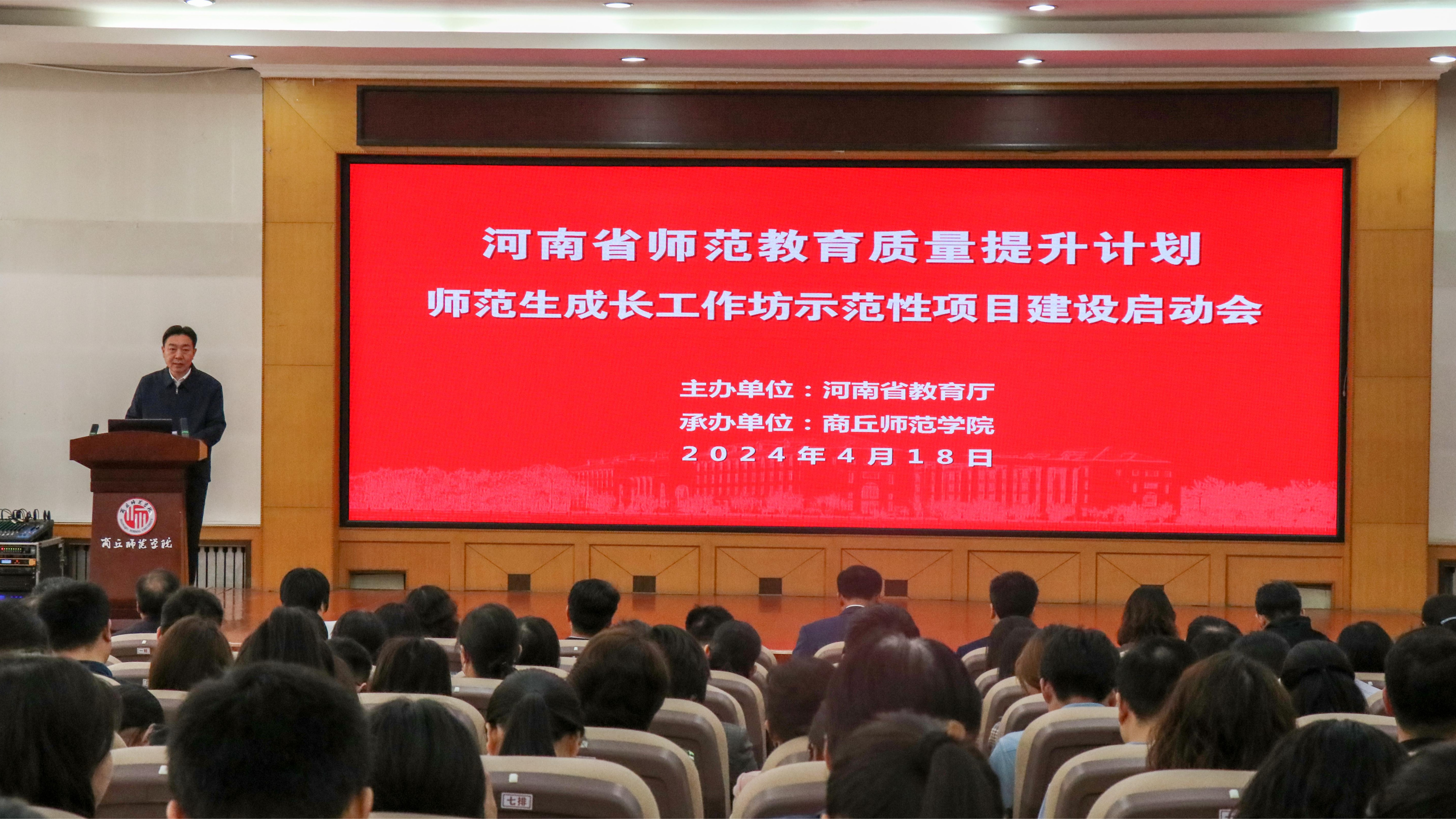 4月18日,由河南省教育厅主办、必赢bwin线路检测中心承办的河南省师范教育质量提升行动计划师范生成长工作坊示范性项目建设启动会在必赢官网梁园校区隆重召开。河南省教育厅教师工作处副处长张会敏,商丘市基础教育发展中心主任李青峰,河南师范大学副校长苗雨,河南大学教育学部学前教育系主任张亚杰,必赢官网党委书记张志坚、校长陈向炜出席活动。副校长郭文佳主持启动仪式。