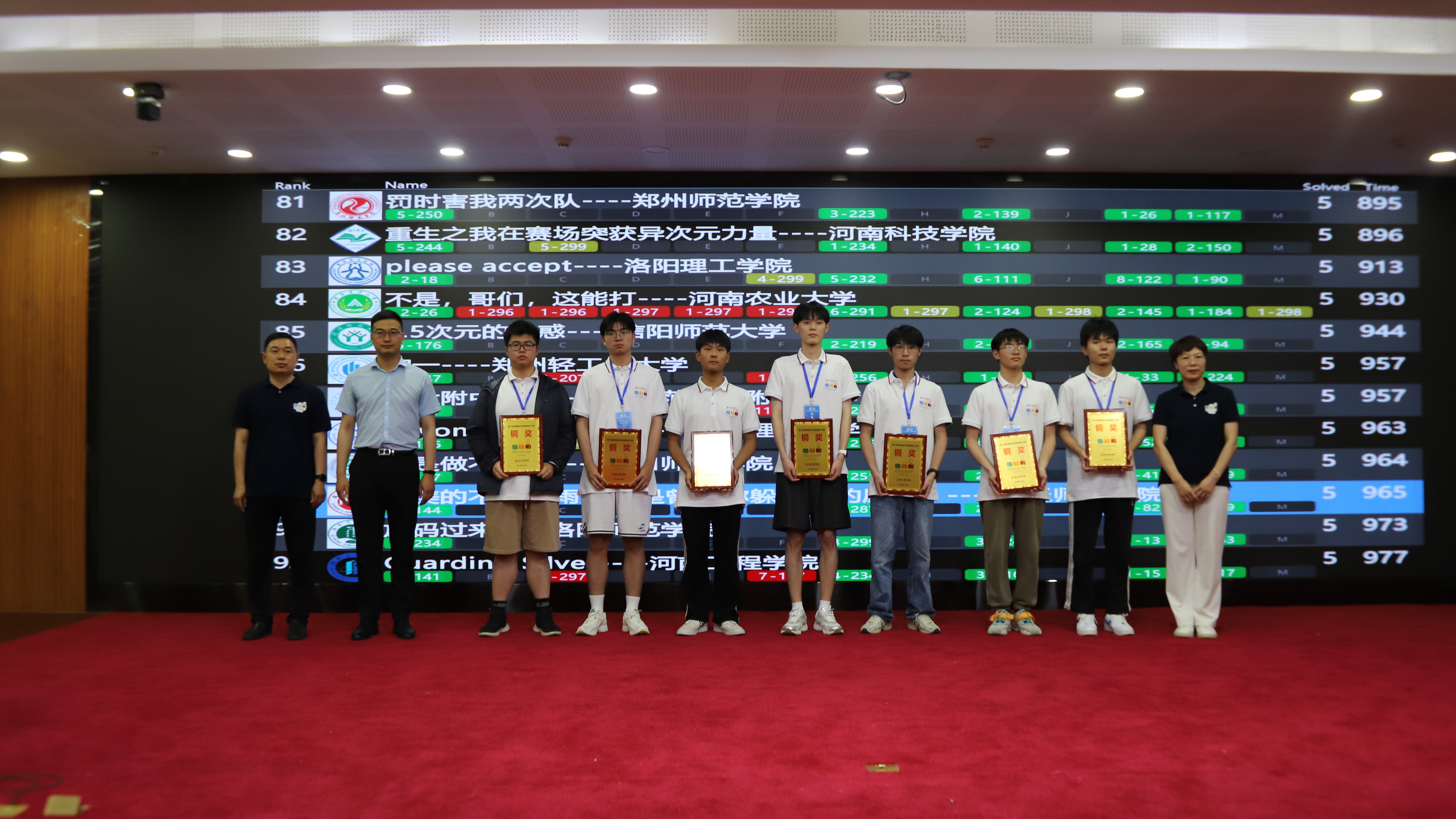 6月3日下午,大赛顺利闭幕。闭幕式上回顾了赛事的精彩瞬间,展示了参赛选手们的努力与汗水。随后,进行了滚榜环节并对获奖团队颁奖。获奖选手们手捧奖杯,面带笑容,这不仅是对他们个人能力的表彰,更是对团队合作和不懈追求的肯定。