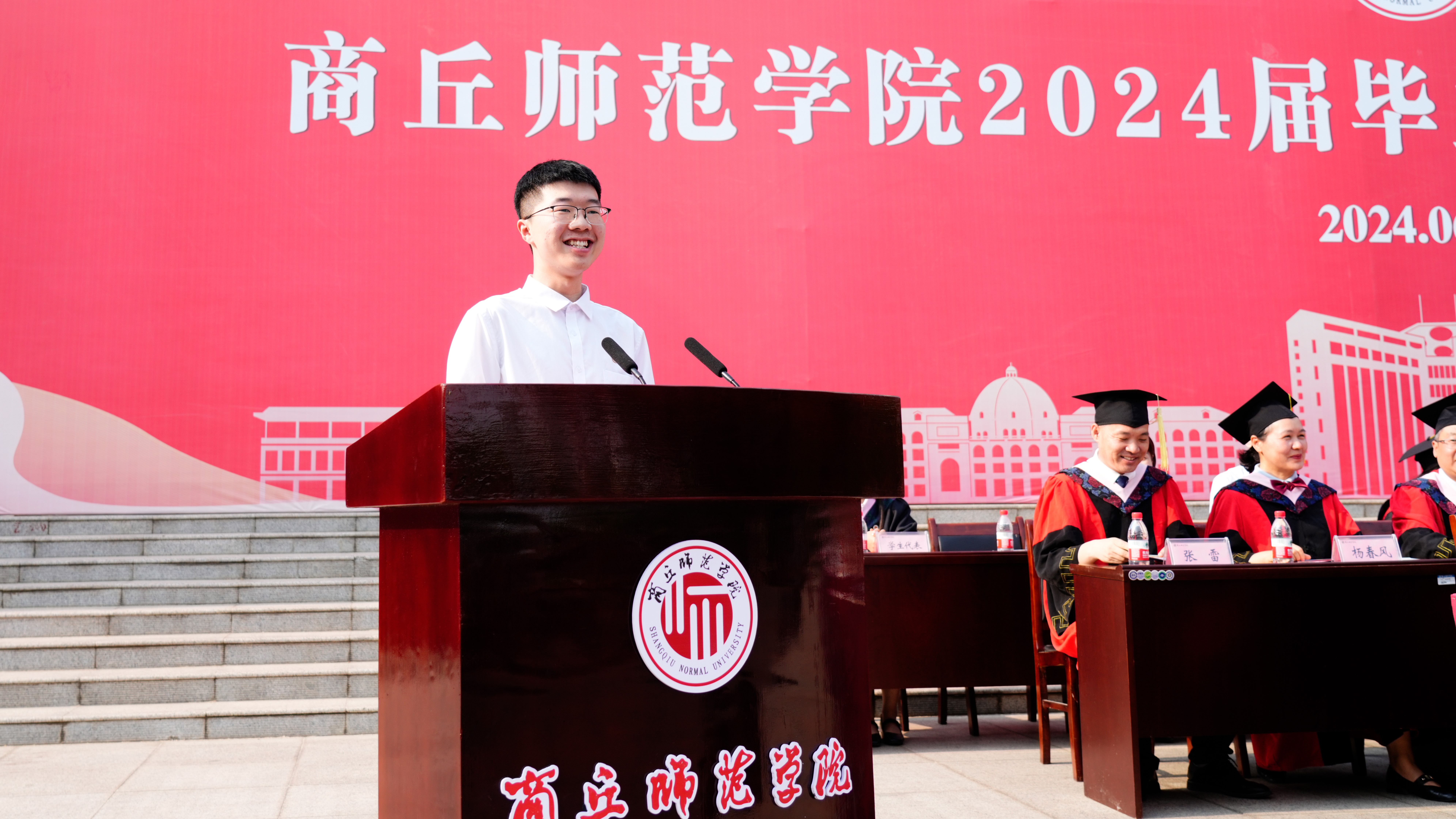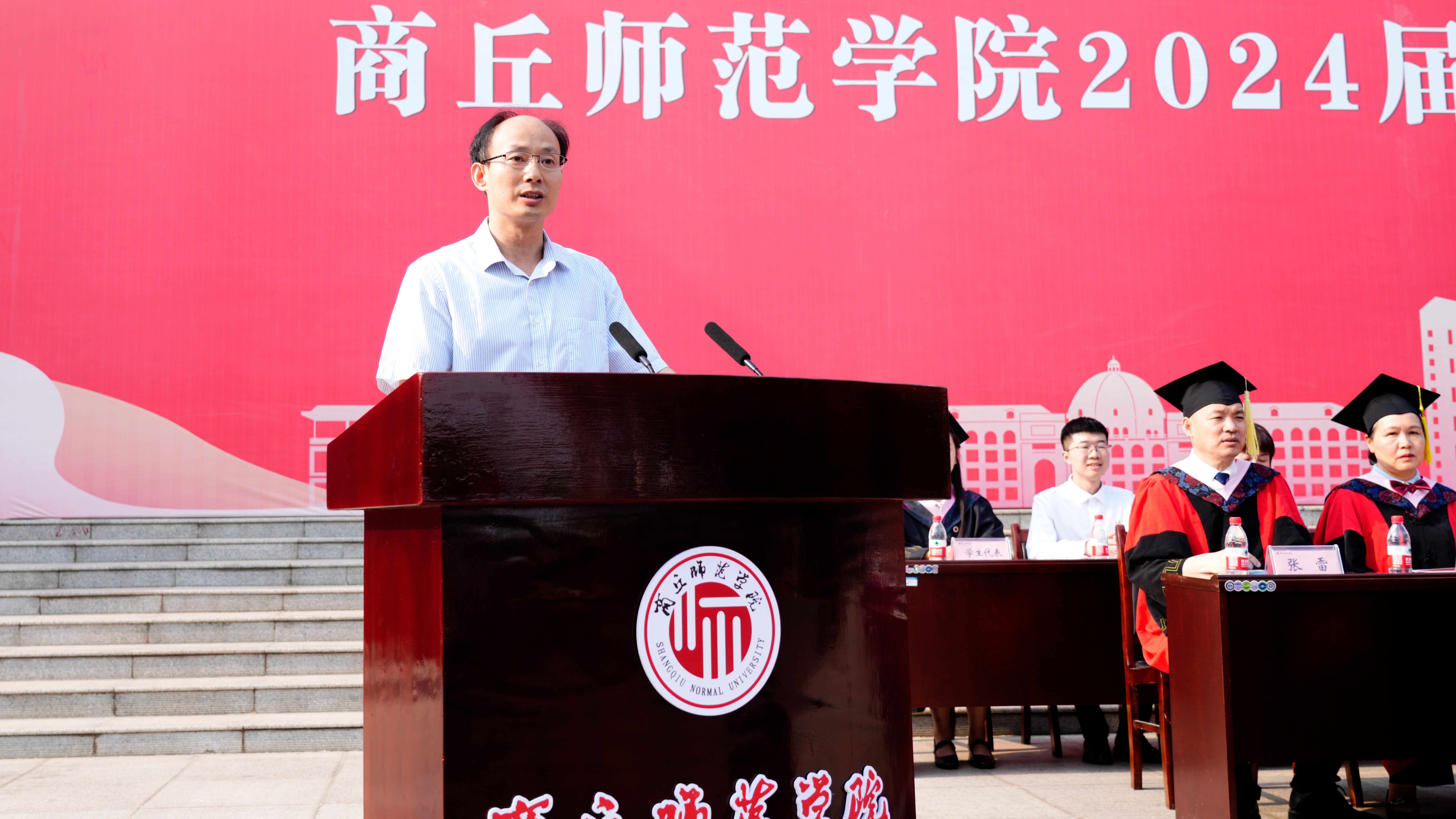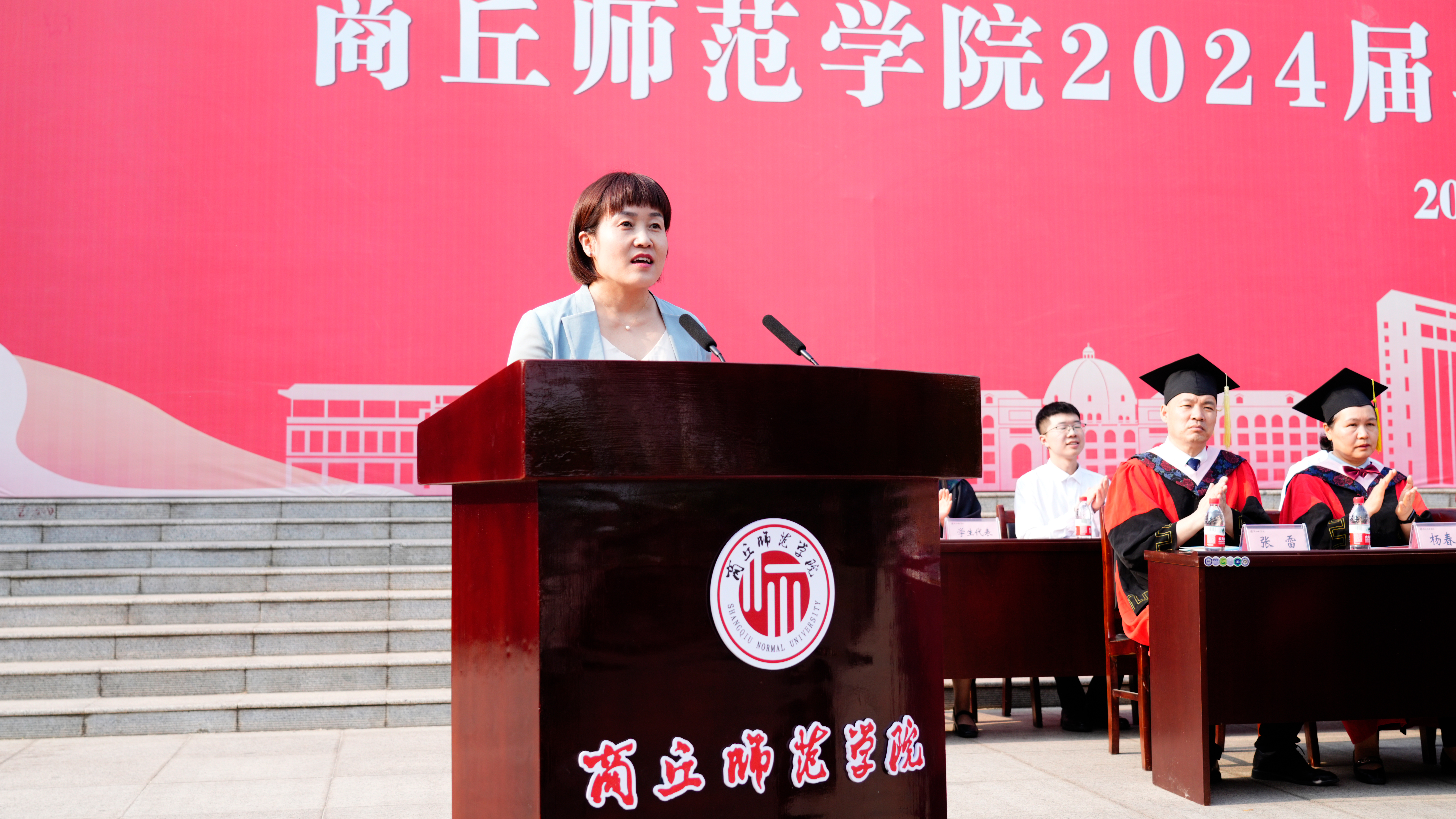 学校黄河故道生态保护研究中心主任朱新玉教授作为教师代表发言。她鼓励毕业生带着对学校的感恩之情,坚持梦想,厚植家国情怀,保持好奇,持续努力学习,注重协作,学会合作共赢,关爱他人,以爱回馈社会,保持一颗平常心,勇敢面对人生的每一次挑战。