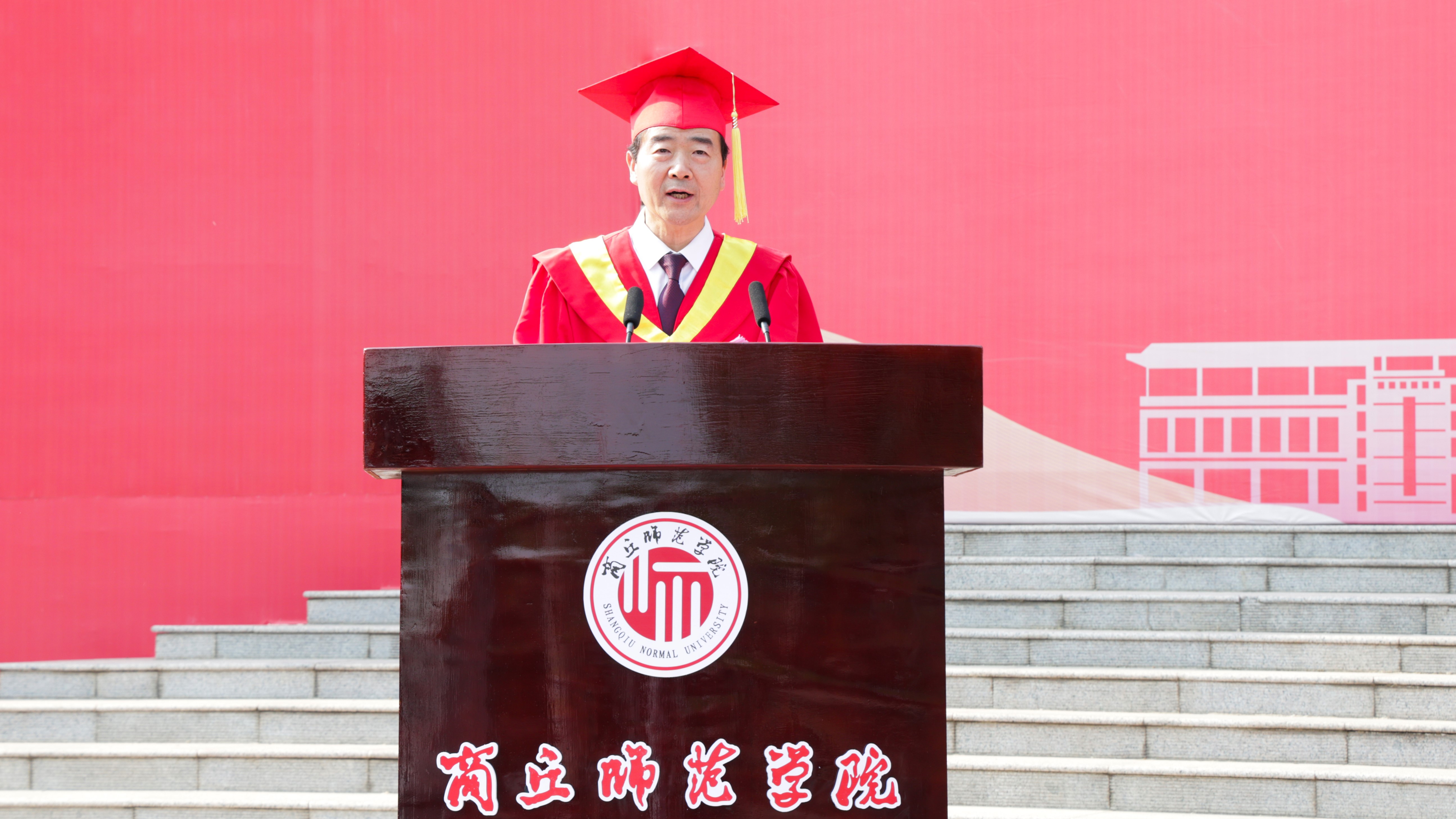 校长陈向炜以“承千载文脉,谱时代新篇”为题致辞。他代表学校全体师生员工,向全体毕业生表示热烈的祝贺,向辛勤耕耘、无私奉献的教职员工、家长、校友和社会各界致以最诚挚的敬意和衷心的感谢。他指出,过去四年,以习近平新时代中国特色社会主义思想为指导,全校毕业生在这美丽的校园里写下了澎湃激扬的青春赞歌,留下了难以忘怀的青春记忆,共同见证了党的二十大胜利召开,共同克服突如其来的各种困难,齐心共创我们美好的校园,全力以赴为建设高水平应用型大学增光添彩。他表示,回首过往,感慨万千,奋楫扬帆,满含嘱托,希望身处伟大时代、肩负时代重任的每一名商师毕业生,都能坚持读书思考,持续提升认知世界的能力;以天下为己任,厚植家国情怀;永葆创新精神,保持与时俱进的动力。坚定担当之决心、涵养担当之精神、锤炼担当之能力,砥砺担当之品格,用奋斗书写绚丽的青春篇章。寄语毕业生要秉持“应天归德 智圆行方”的校训,志存高远、直面挑战、脚踏实地、勇于奉献、建功立业,争创辉煌。他强调,母校永远是为同学们遮风挡雨、敞开怀抱的坚强后盾,期待毕业生常回母校看看,祝愿全体毕业生所行皆坦途,所求皆所愿!