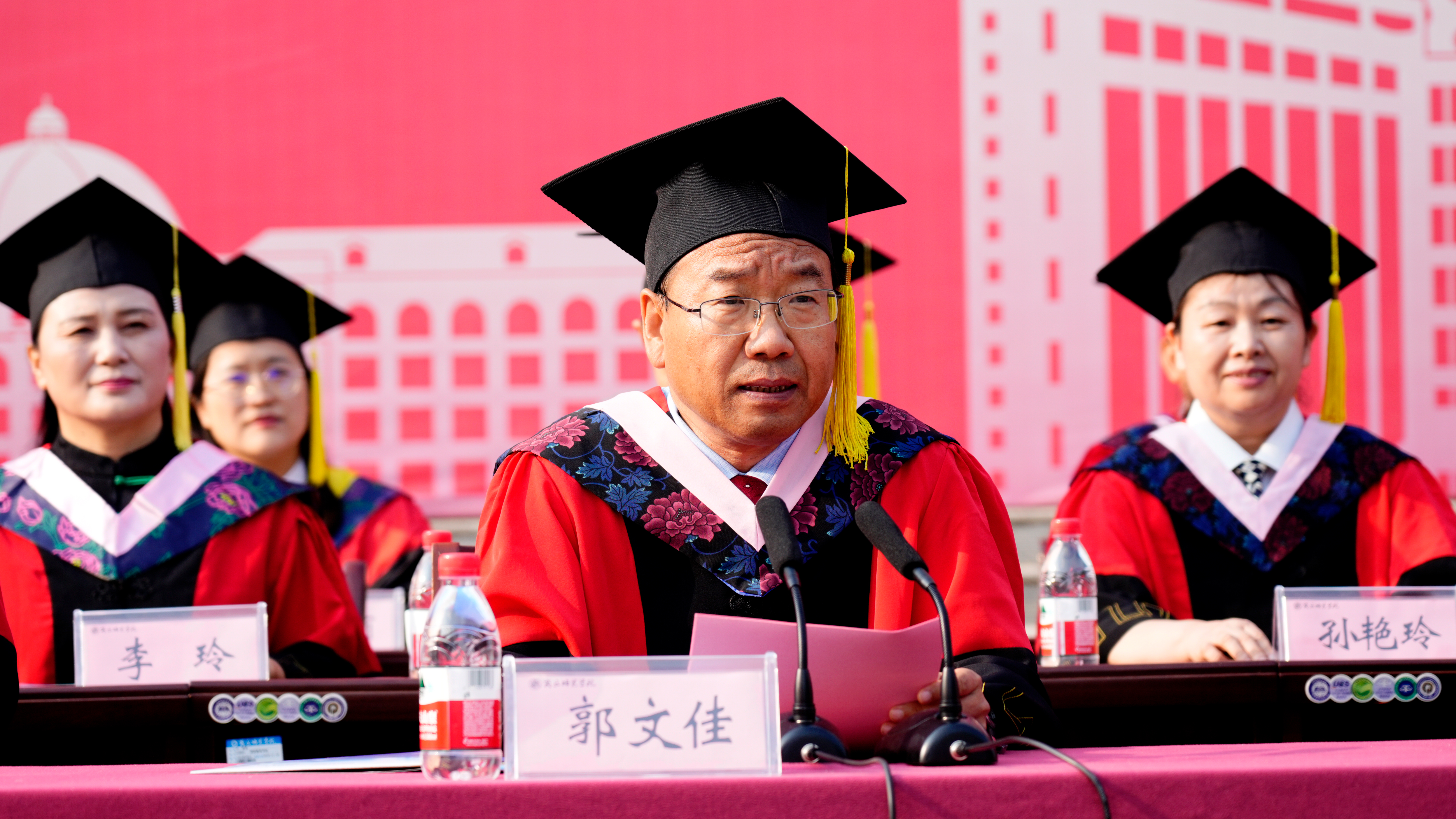 副校长郭文佳为毕业生拨穗正冠、颁发学位证书