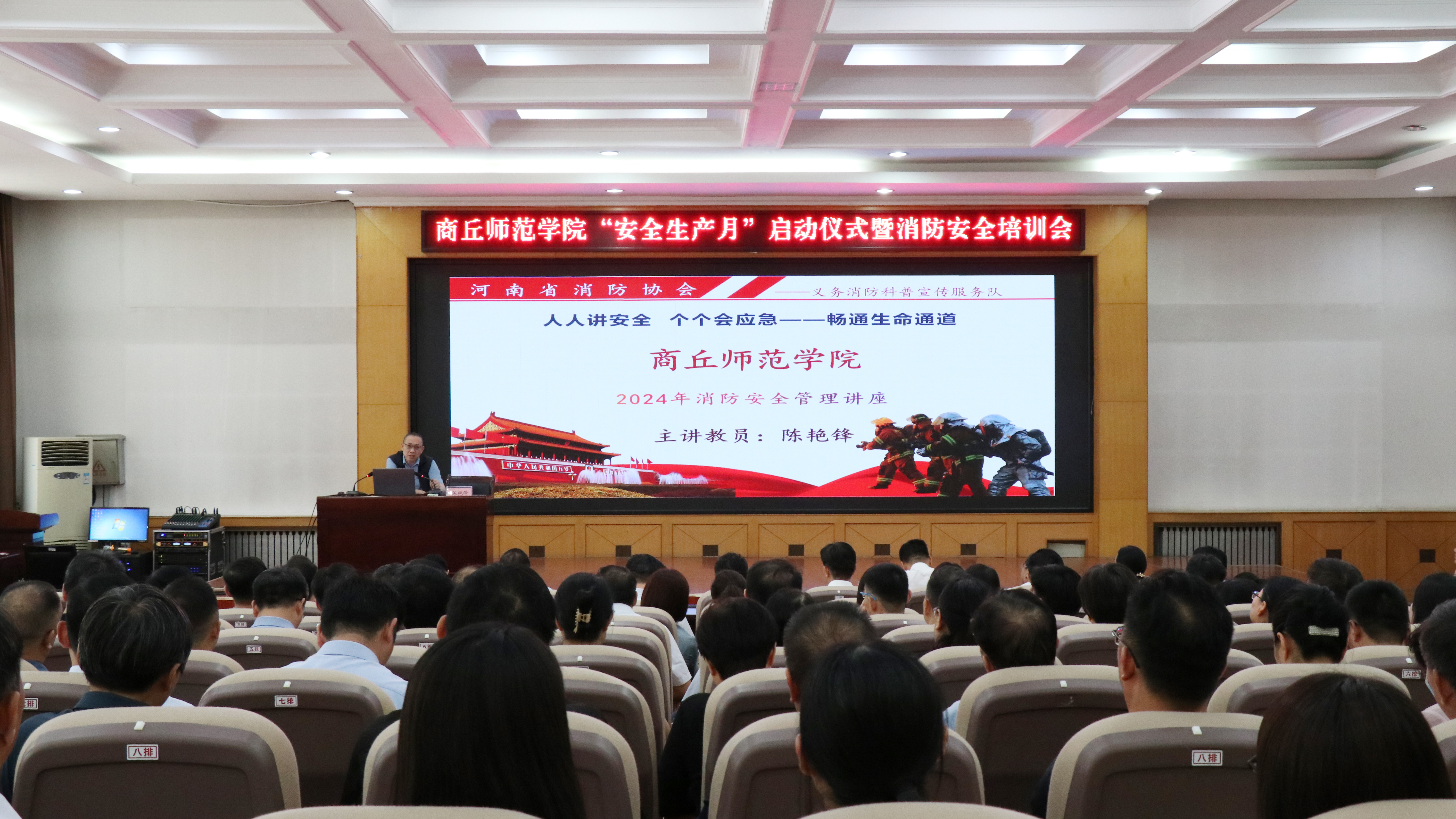 6月12日,必赢官网在梁园校区归德楼举行必赢bwin线路检测中心“安全生产月”启动仪式暨消防安全培训会。全体校领导、中层干部参加。副校长张箭主持会议。