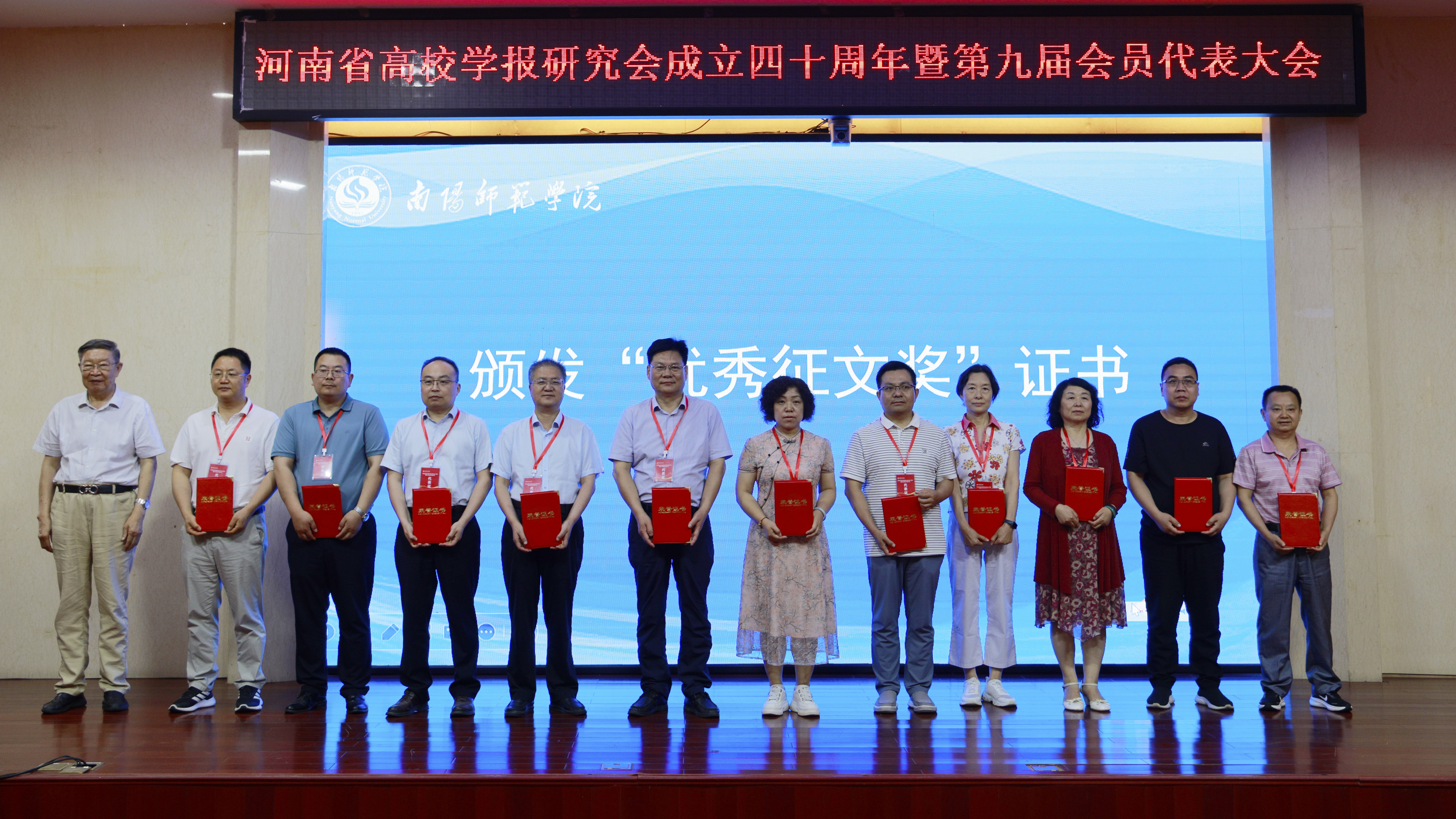 学报编辑部郭德民同志荣获河南省高校学报研究会“第二届学报工作突出贡献奖”,孟团结、宁智锋、韦琦辉、李维乐等四位同志荣获河南省高校学报研究会“成立四十周年主题征文优秀论文奖”。会上展播了学报编辑部制作的《放飞学术梦想铸就卓越品质——必赢bwin线路检测中心学报四十周年发展纪实》微视频。
