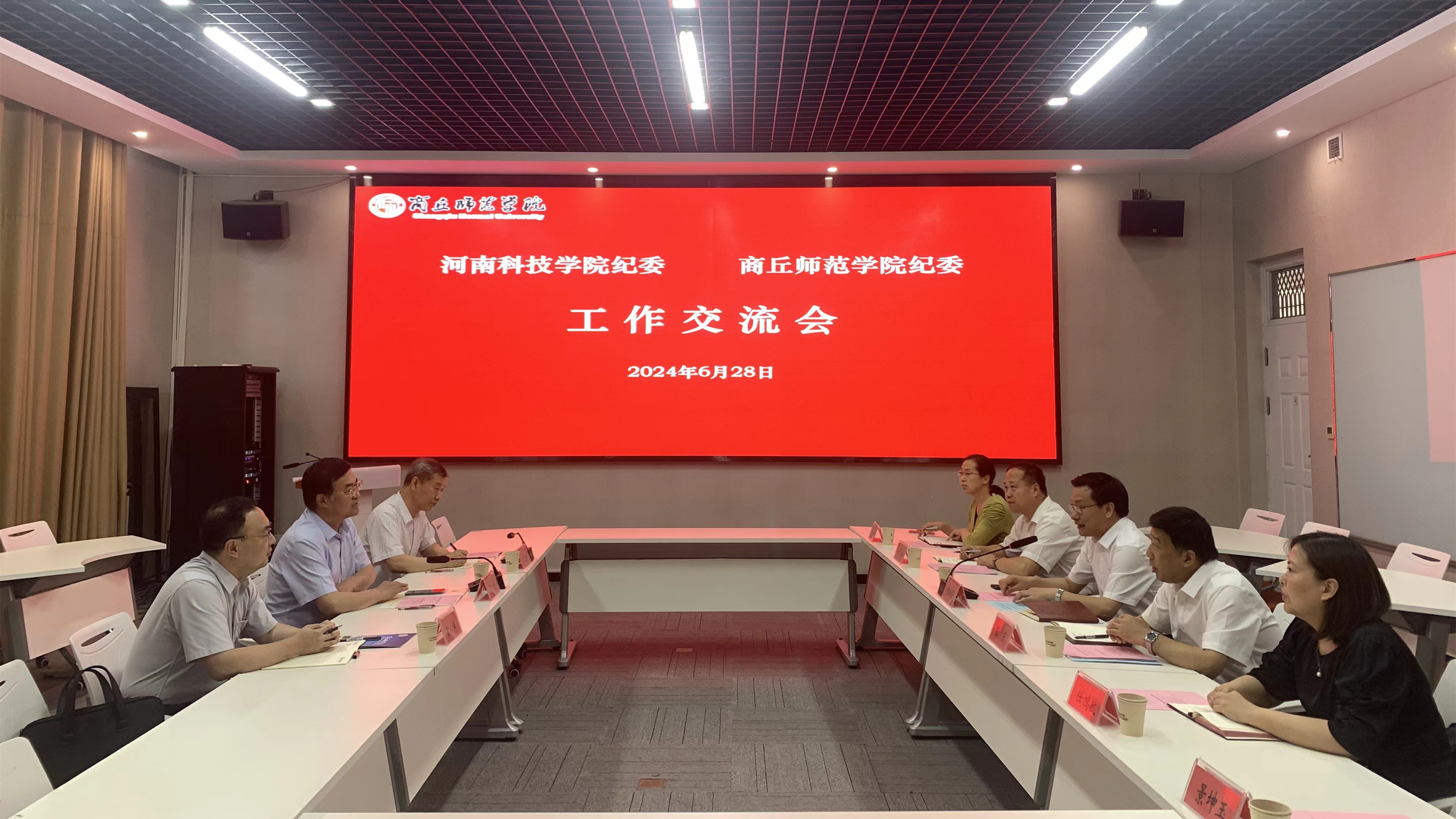 6月28日上午,河南科技学院纪委书记、监察专员贺杰一行3人来必赢官网进行调研交流,双方在三商楼召开工作交流会。必赢官网纪委书记、监察专员何瑞强主持会议。