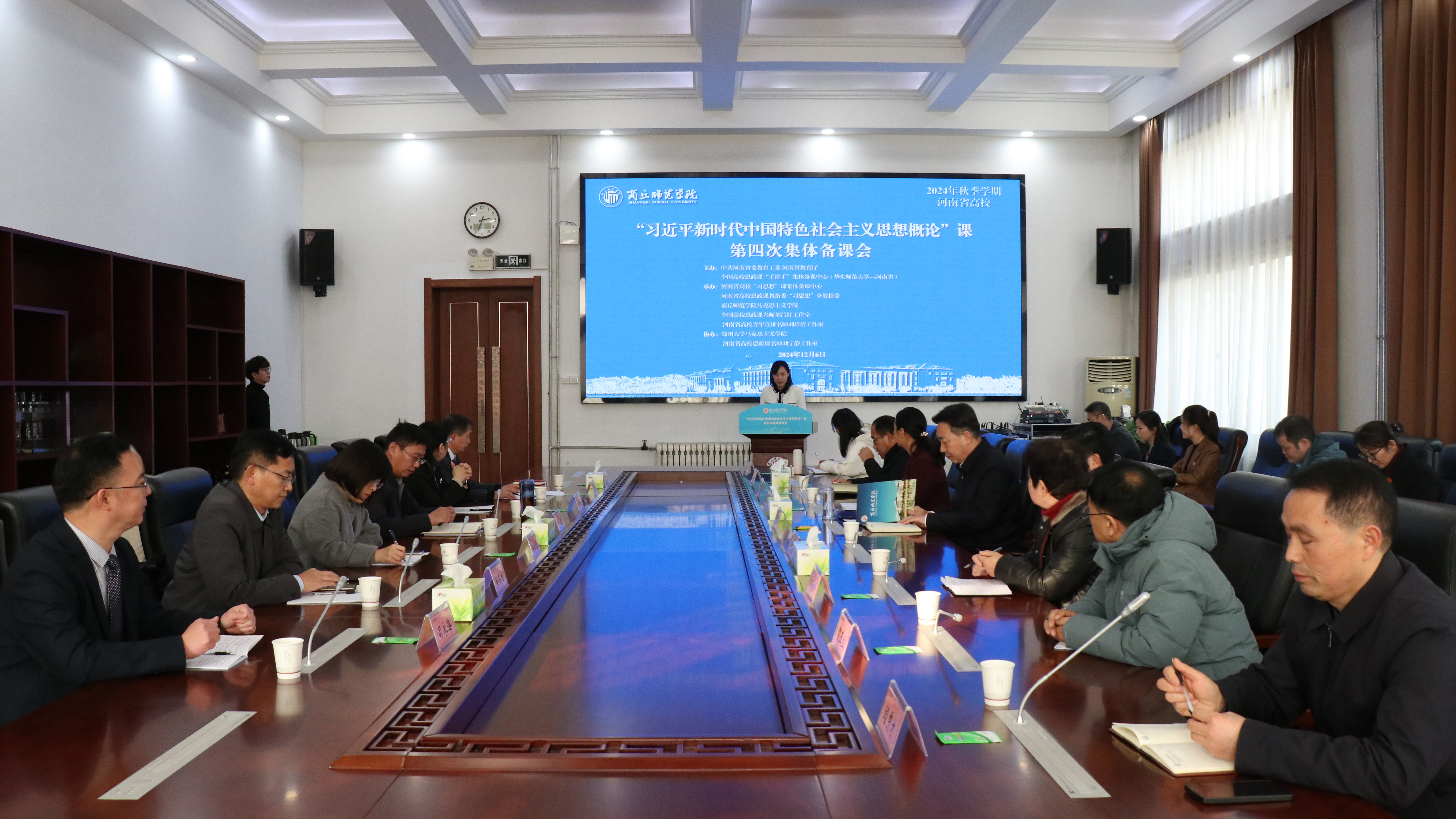 为深入学习贯彻党的二十届三中全会精神,坚持思政课建设与党的创新理论武装同步推进,12月6日,由省委教育工委、省教育厅、全国高校思政课“手拉手”集体备课中心(华东师范大学-河南省)联合主办的2024年秋季学期河南省高校“习近平新时代中国特色社会主义思想概论”课第四次集体备课会在必赢官网举行。河南省教育厅思政处处长陈凯,必赢bwin线路检测中心党委书记张志坚、副书记刘国庚、副校长王晓征出席会议。省内外知名思政课专家、3位说课教师及商丘各高校马克思主义学院院长、习近平新时代中国特色社会主义思想概论教研室主任参加活动。