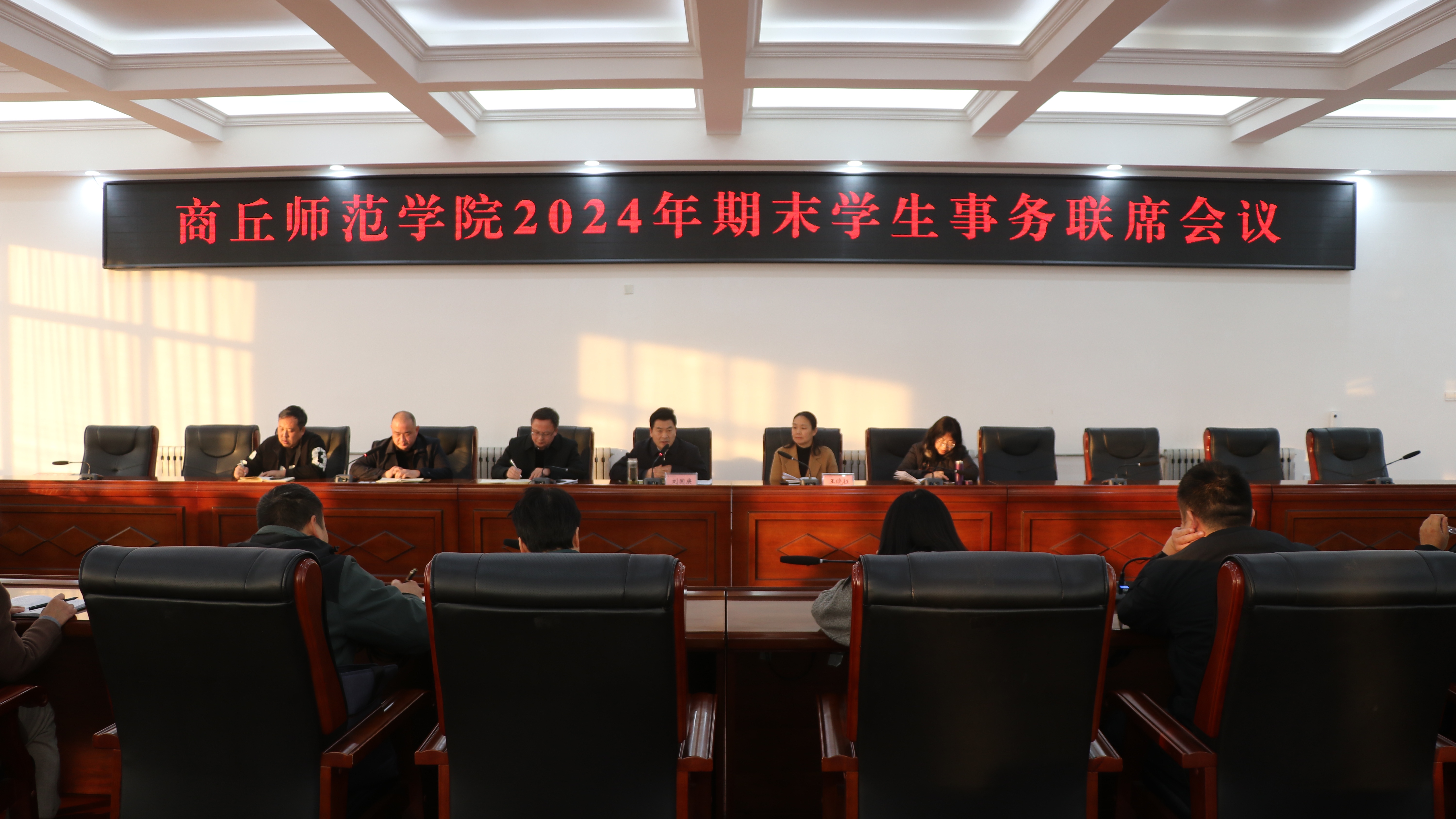 王晓征要求,各学院要认真贯彻落实会议精神,认真总结梳理全年工作开展情况,精心谋划2025年学生工作计划,加强期末考试期间的考风考纪教育,开展对“五困生”的关心关爱和帮扶,扎实做好期末各项学生管理、服务工作。