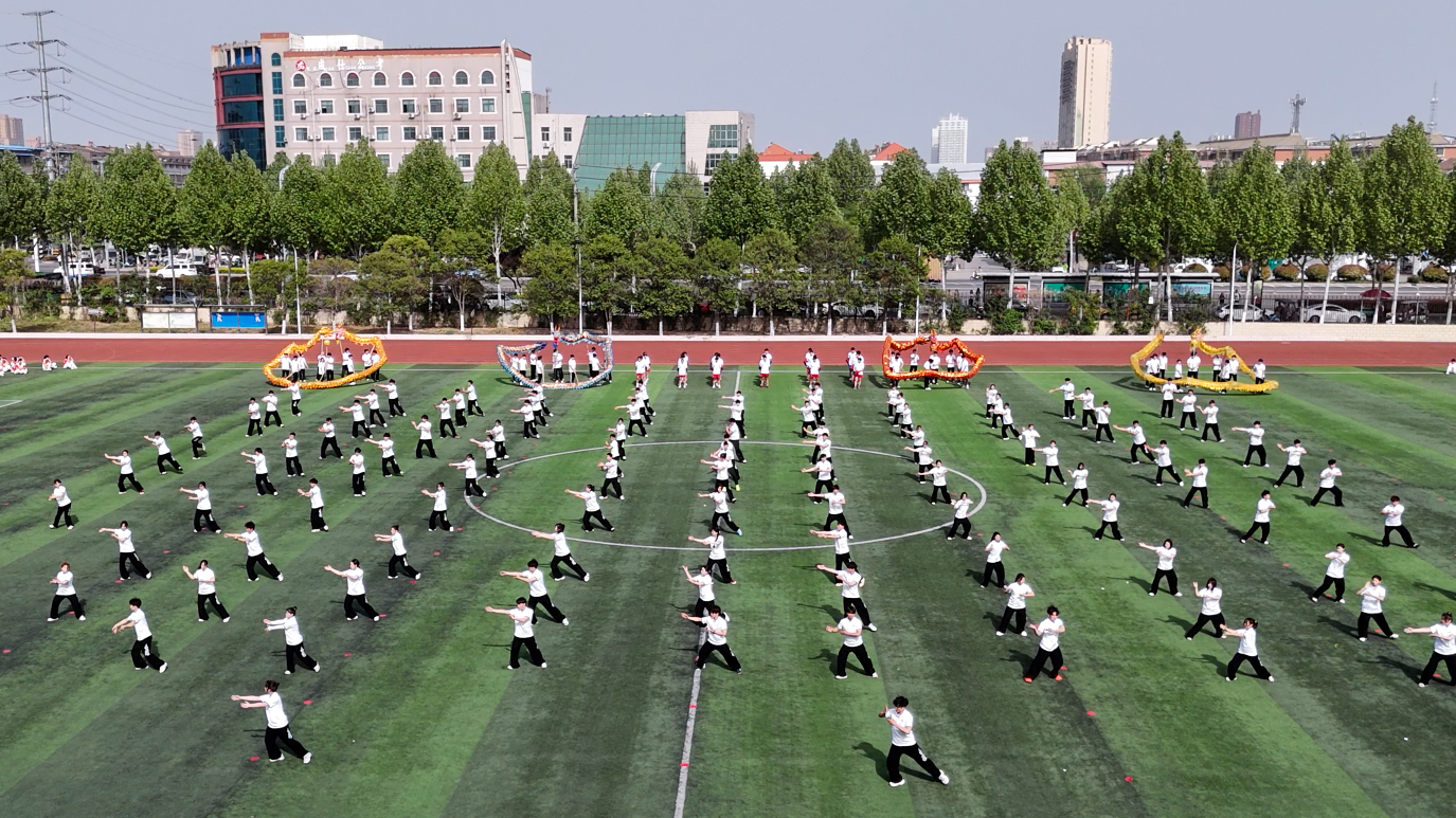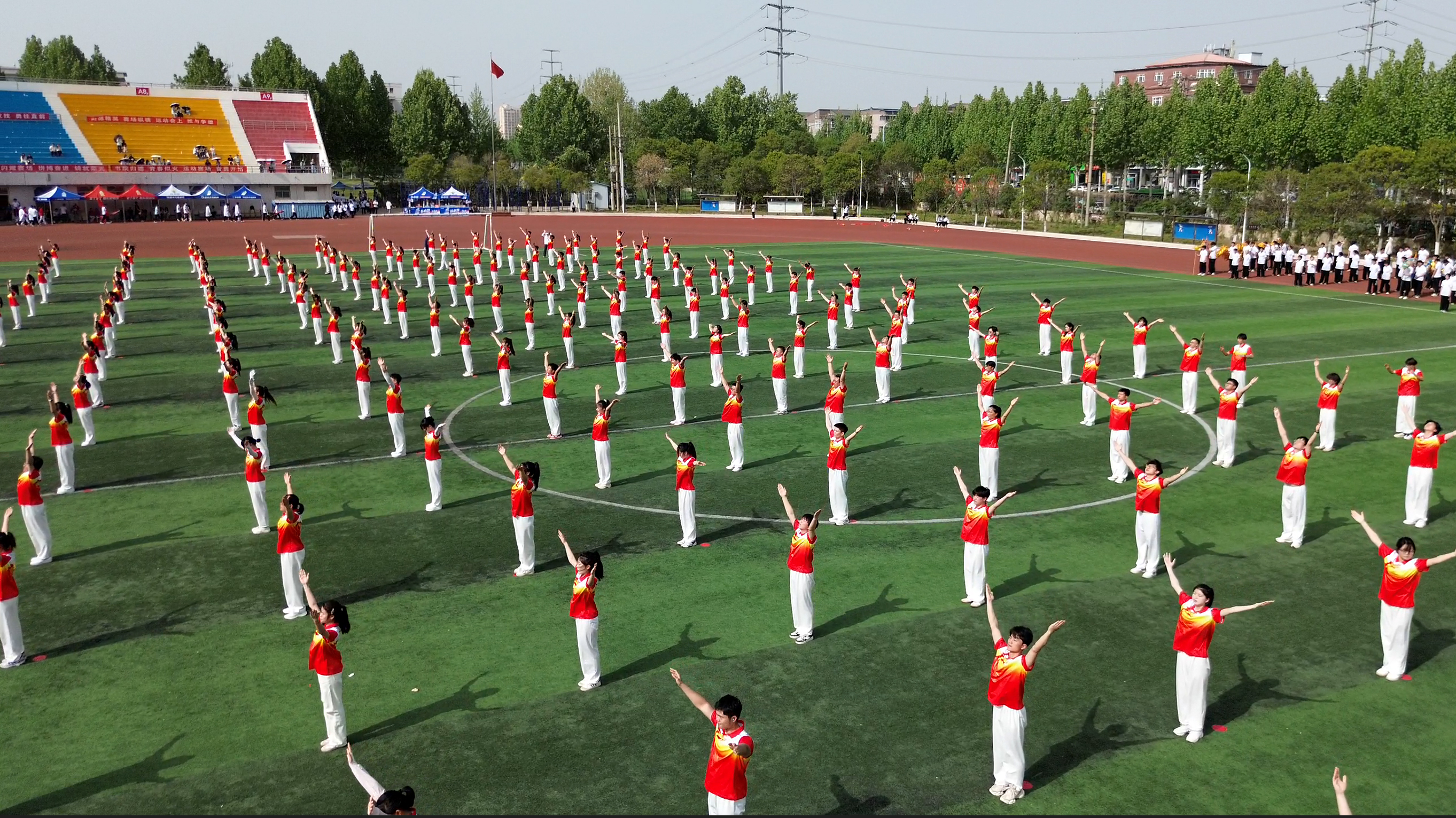 伸展、弯腰、踢腿,整齐划一的动作,展现青春的蓬勃朝气