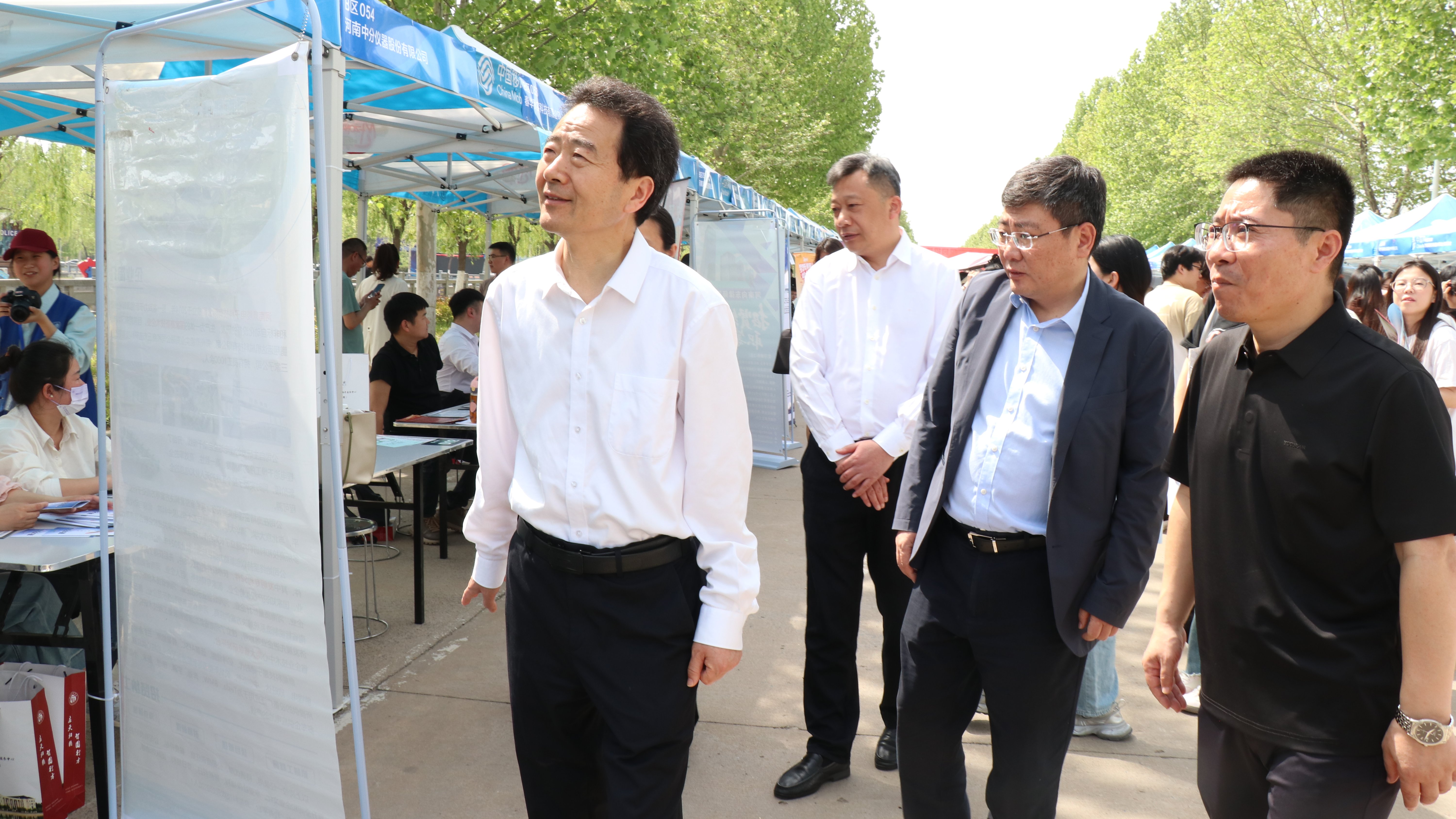 4月18日,必赢官网在梁园校区举办“豫荐未来 青春起航”2025届毕业生春季双选会。校长陈向炜、副校长王晓征、商丘市人力资源和社会保障局局长谷智、商丘市就业创业服务中心主任郭东风,必赢官网创新创业教育与就业指导服务中心及各学院主要负责人深入现场调研指导。到会领导与招聘单位负责人深入交流,精准把握用人单位的招聘需求和对毕业生专业技能的最新要求,认真听取用人单位对学校人才培养工作的宝贵意见和建议。同时,他们还关切询问现场学生的就业意向与求职进展,鼓励毕业生们要积极主动与用人单位沟通,充分展示个人优势,将个人发展融入国家需求,积极投身国家战略,为经济社会发展贡献青春智慧与力量。