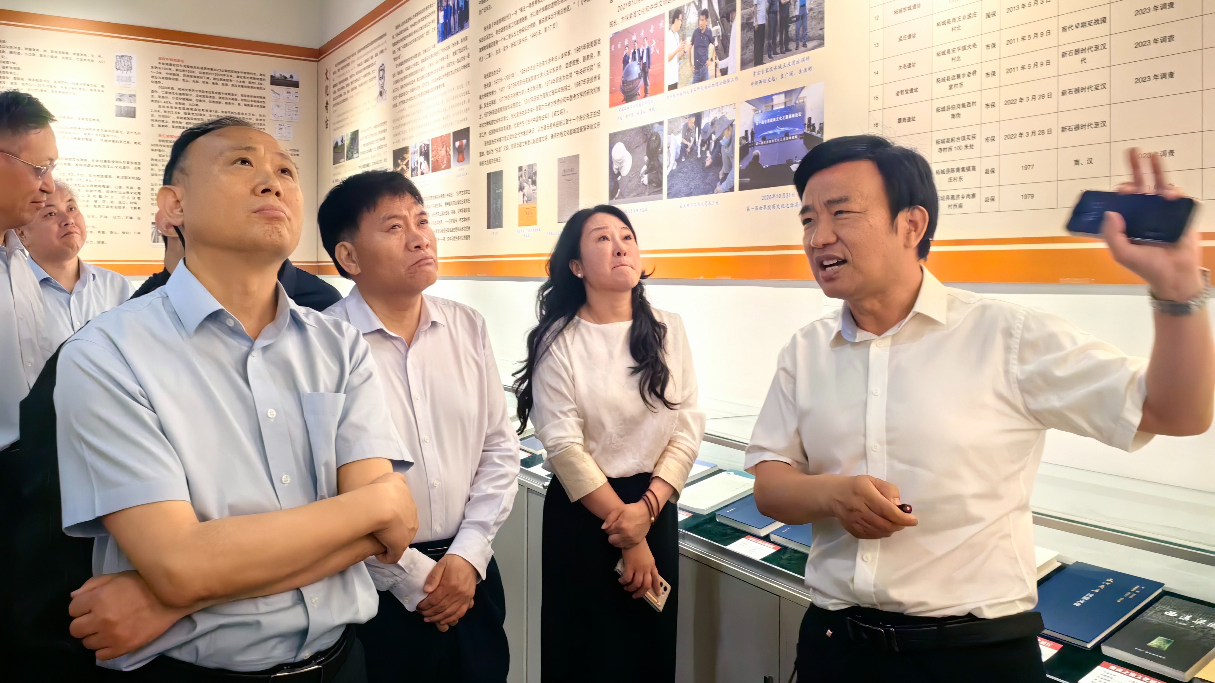 与会嘉宾观看了“殷商之源图谱”系列AI视频和《殷商之源 诗述商丘》30集系列专题片,还集体参观了“殷商之源文化研究成果展”并合影留念。