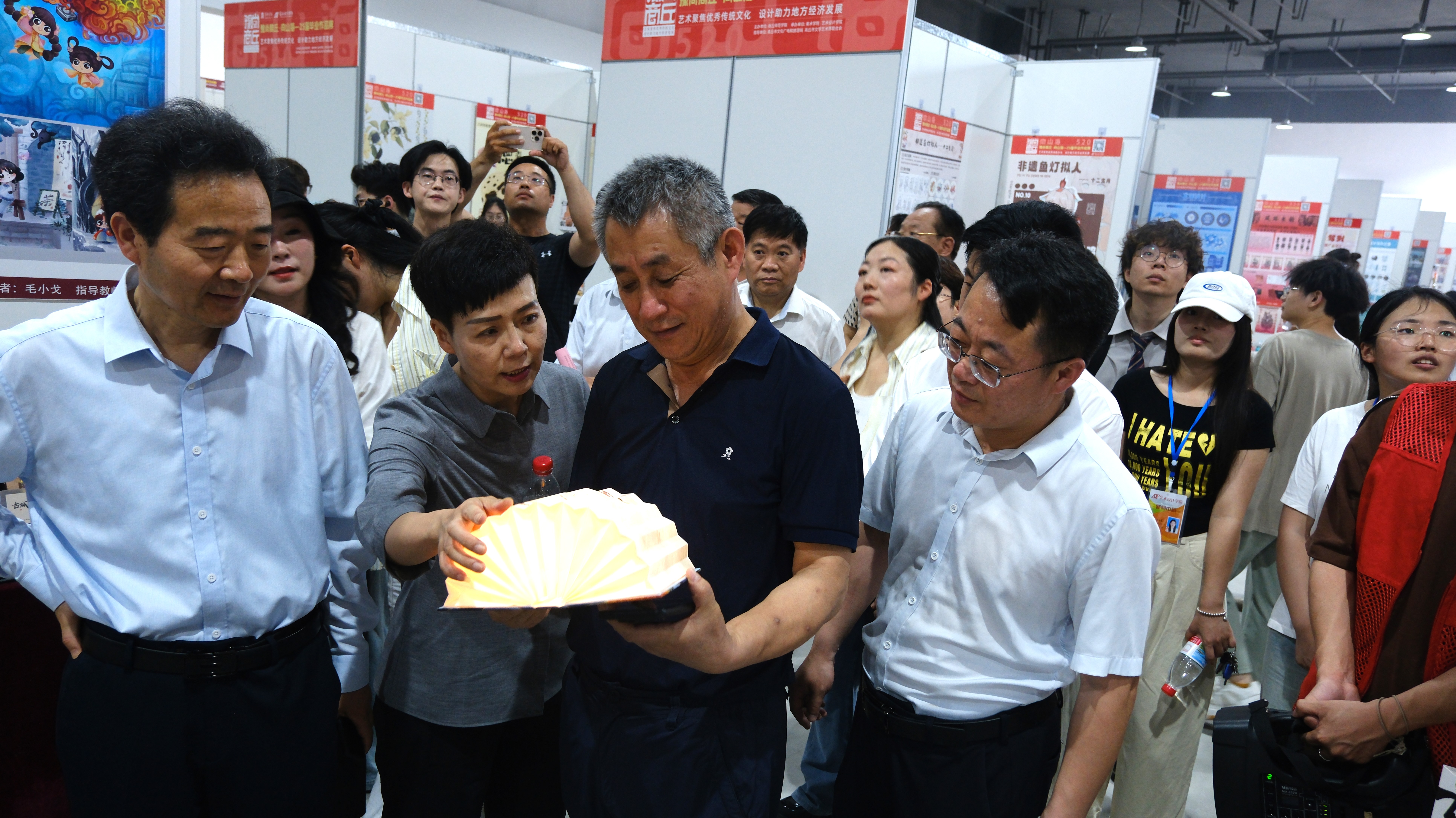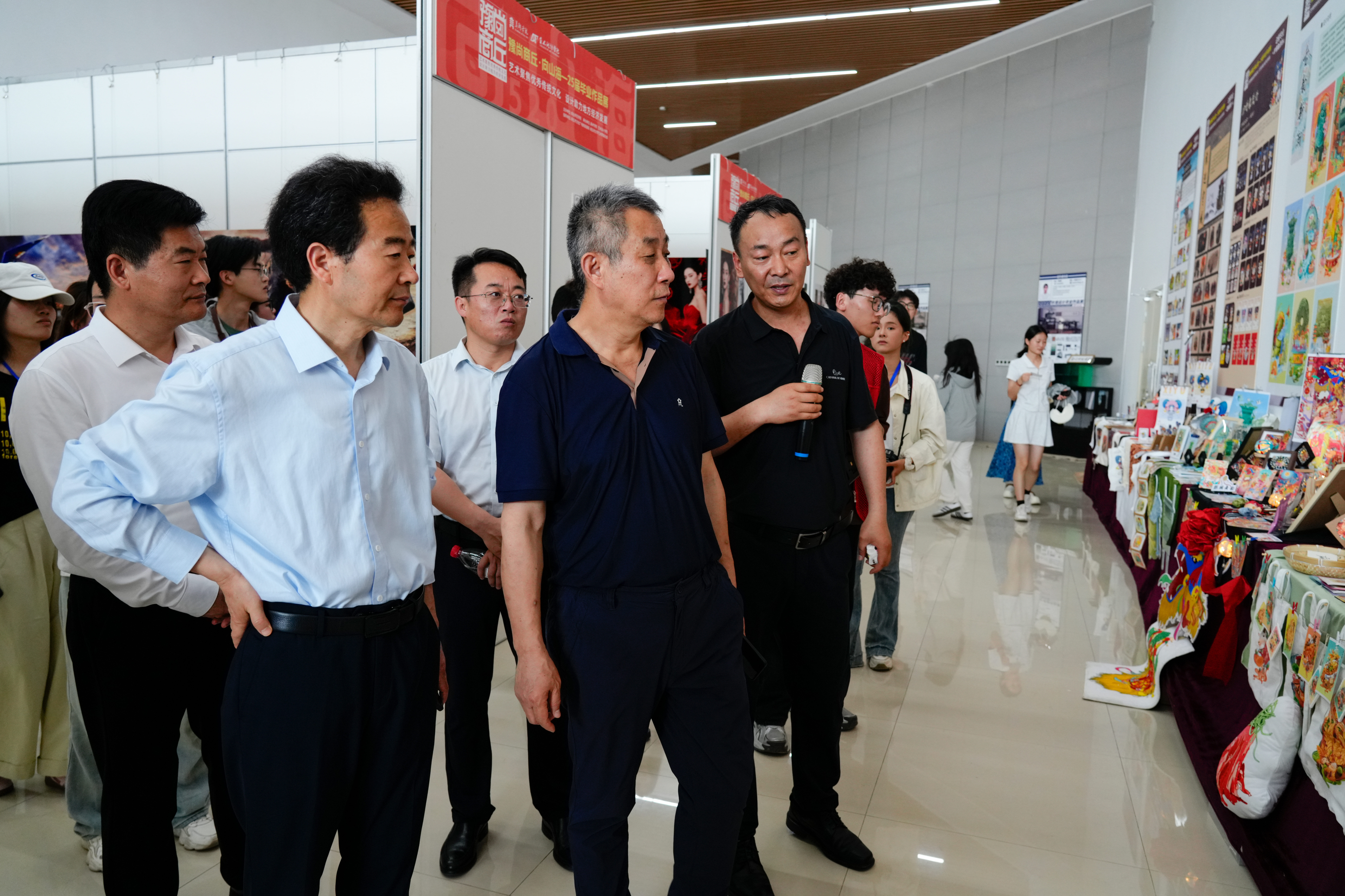 5月20日,“豫尚商丘·向山海”2025届毕业生作品展暨就业推介会在梁园校区应天艺术中心开幕。商丘市委二级巡视员刘道明、商丘市文化广电和旅游局党组书记、局长史新艳、商丘市文学艺术界联合会党组书记、主席刘瑞芳、商丘市社会科学联合会主席陈星、商丘市民盟主委郭华轩、必赢bwin线路检测中心校长陈向炜、校党委副书记、工会主席刘国庚、校党委副书记吴金山、副校长翟滨以及民建省委文化委、睢阳区创建办、梁园区文旅局、睢阳区文旅局、睢阳区文联和必赢官网相关部门负责人出席。此外,商丘市启美艺术培训有限公司、河南壹刻标识有限公司、商丘市同济装饰工程有限公司等30余家企业到校招聘。开幕式由美术学院院长李林主持。