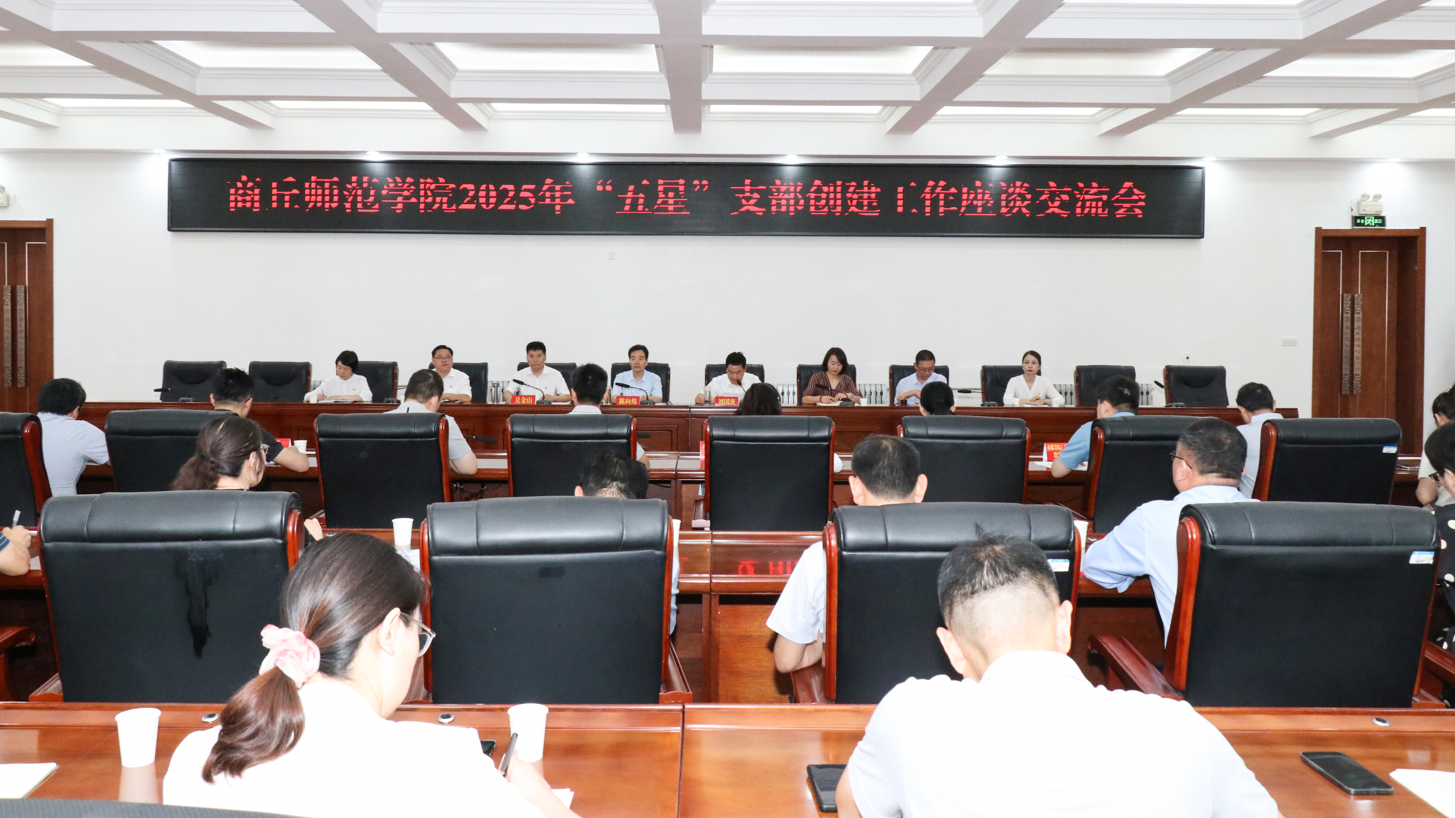 为喜庆中国共产党成立104周年,扎实推进基层党组织建设,充分发挥“五星”支部示范引领作用,2025年“五星”支部创建工作座谈交流会于7月1日在梁园校区归德楼419会议室召开,校党委副书记、校长陈向炜出席并为“五星支部”授牌。