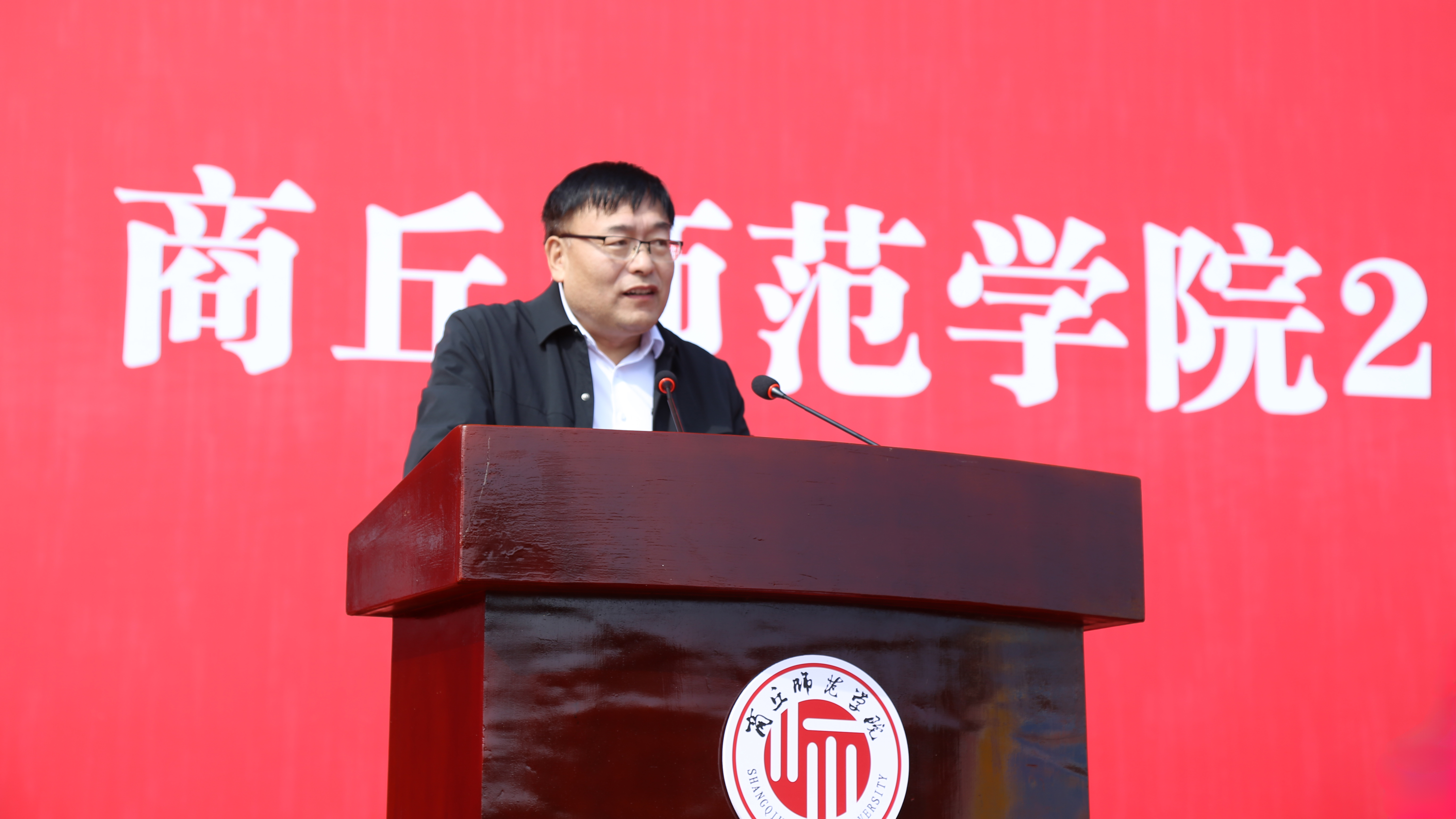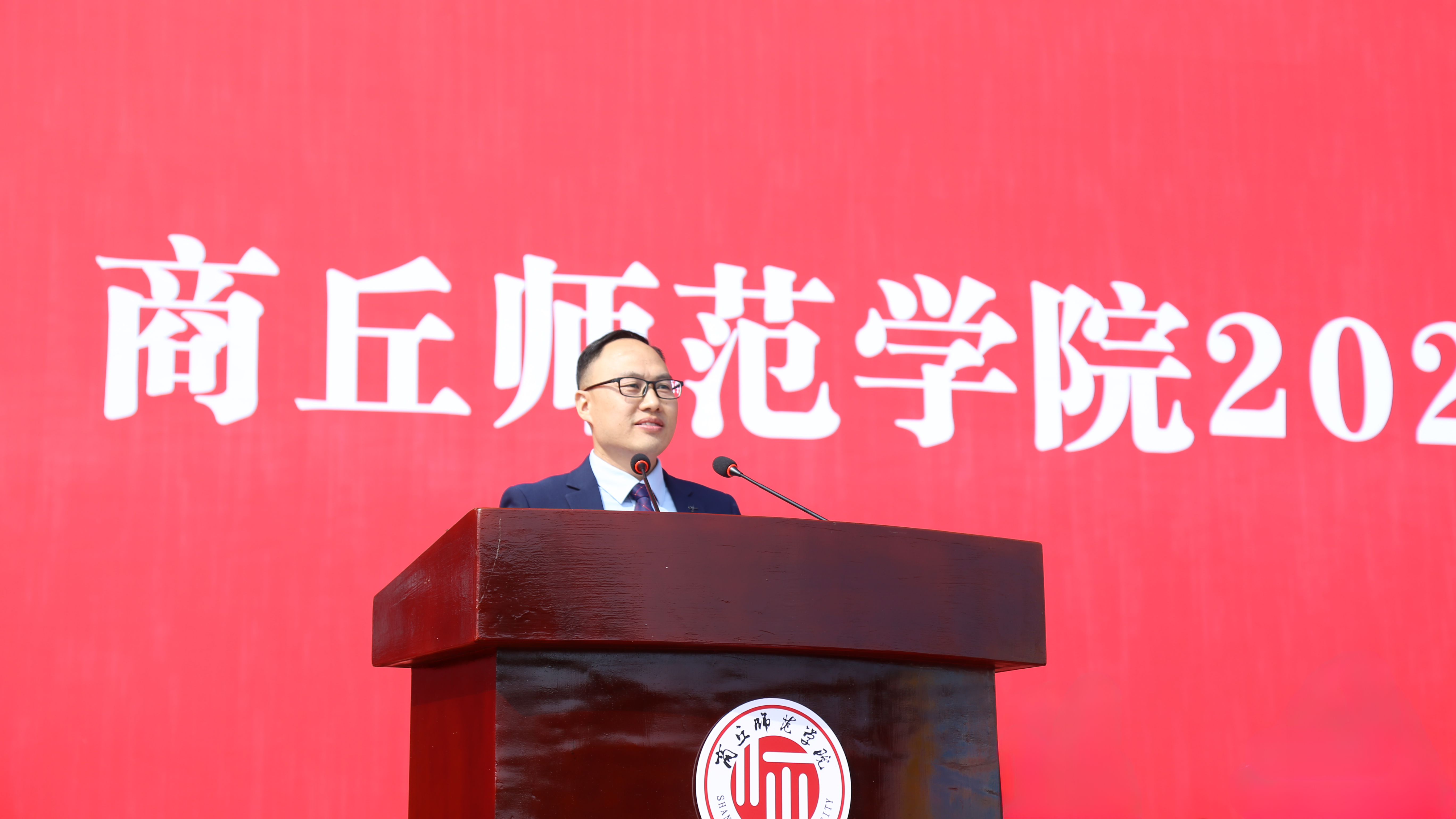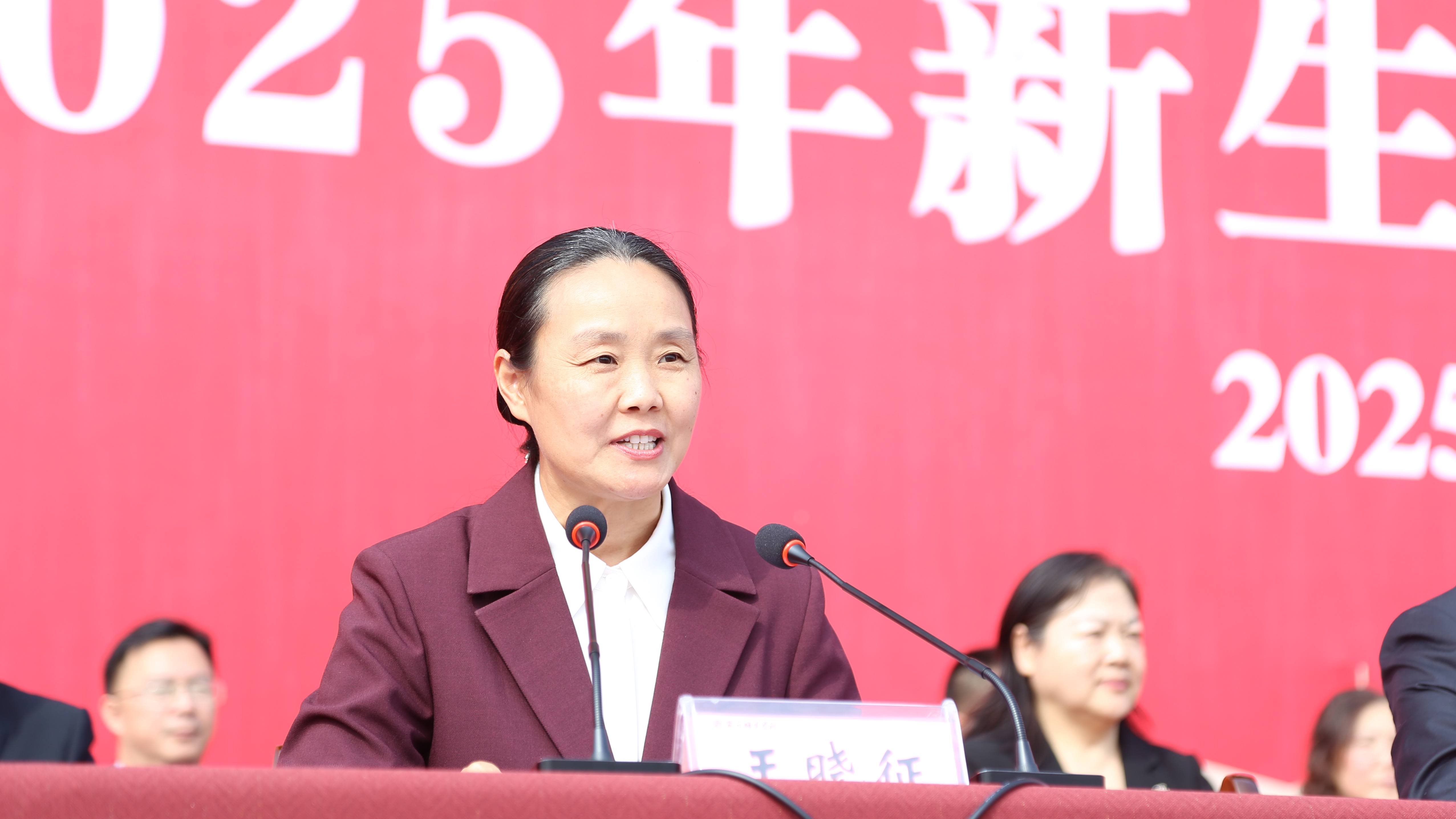 校长陈向炜以《勇立时代潮头 书写青春华章》为题作新生开学致辞。他代表学校向来自全国各地的2025级新同学表示热烈欢迎,并对圆满完成军训任务的新生们表示祝贺。陈向炜回顾了学校悠久的历史文化底蕴,强调了学校在新时代的使命与担当。他向同学们提出了四点期望:一要以“德”立身,做心怀家国的追光者;二要以“学”为先,做跨界融合的探索者;三要以“行”为要,做知行合一的实干者;四要以“创”为翼,做与时俱进的开拓者。希望同学们以商丘文化为根,以应天精神为魂,秉承“应天归德、智圆行方”的校训和“学以求真,行尚笃信”的校风,用奋斗书写无愧于自己、学校、时代的青春华章;学校将提供优质资源和平台,愿同学们在未来的四年中收获健全人格、独立精神和温暖心灵,在强国建设、民族复兴的壮阔征程上定义属于自己的精彩,书写充满希望的未来。