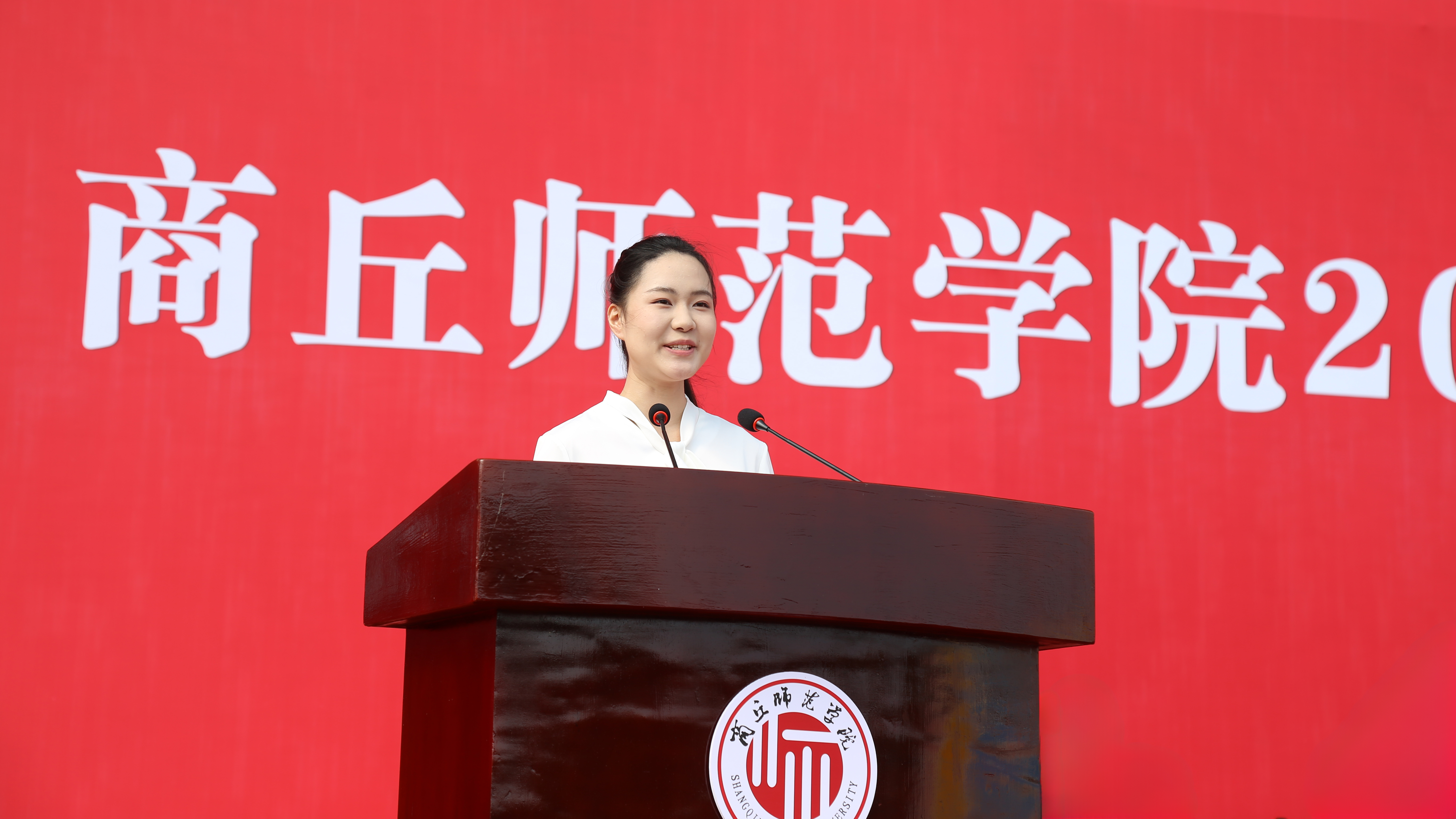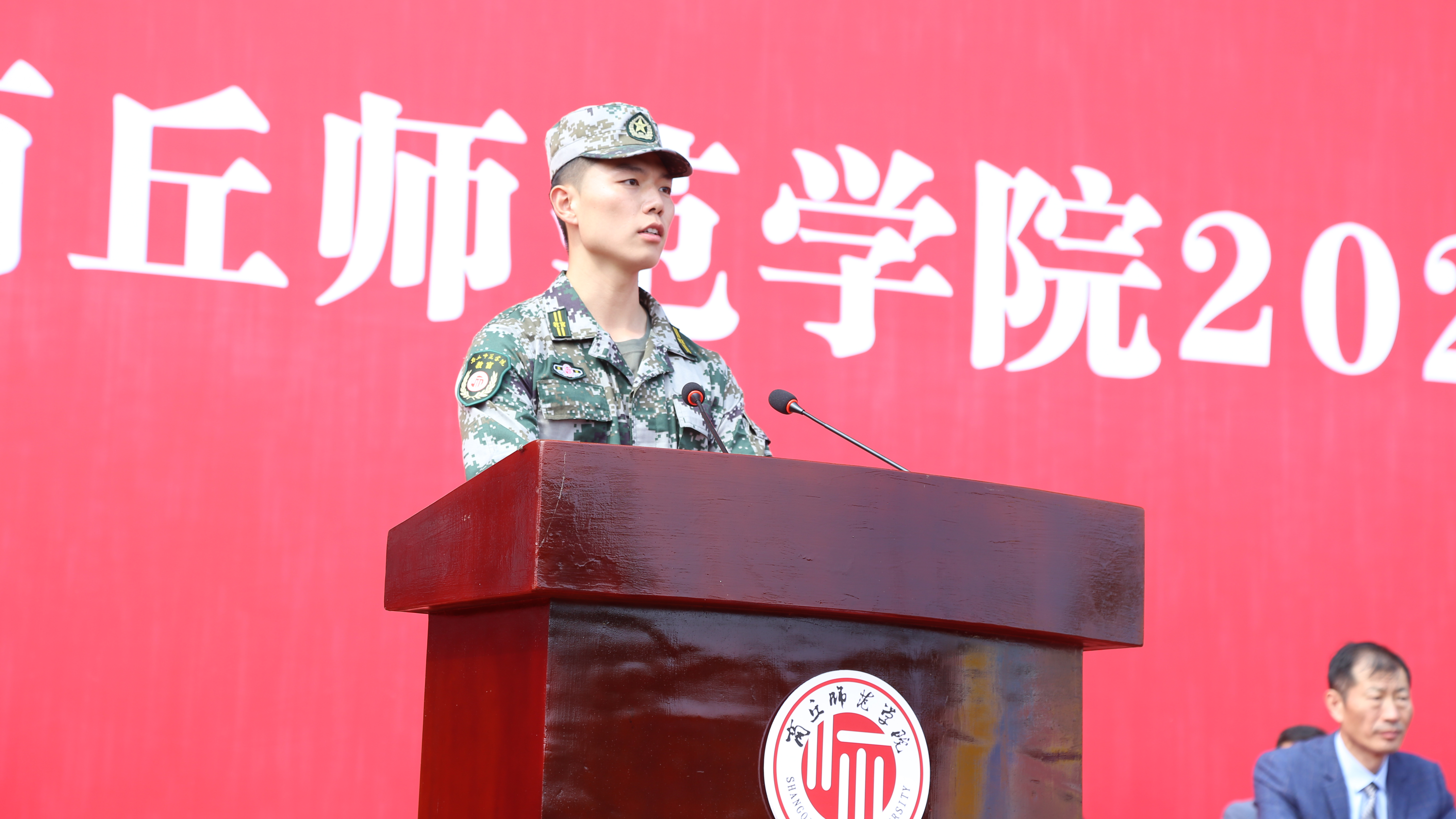 教师代表、生物与食品学院施传信,校友代表、95届中文系毕业生韩敬贺,在校生代表、化学化工学院化学专业2022级牛智童,新生代表、测绘与规划学院地理科学专业宋雨泼和新生军训教官代表分别作了发言。