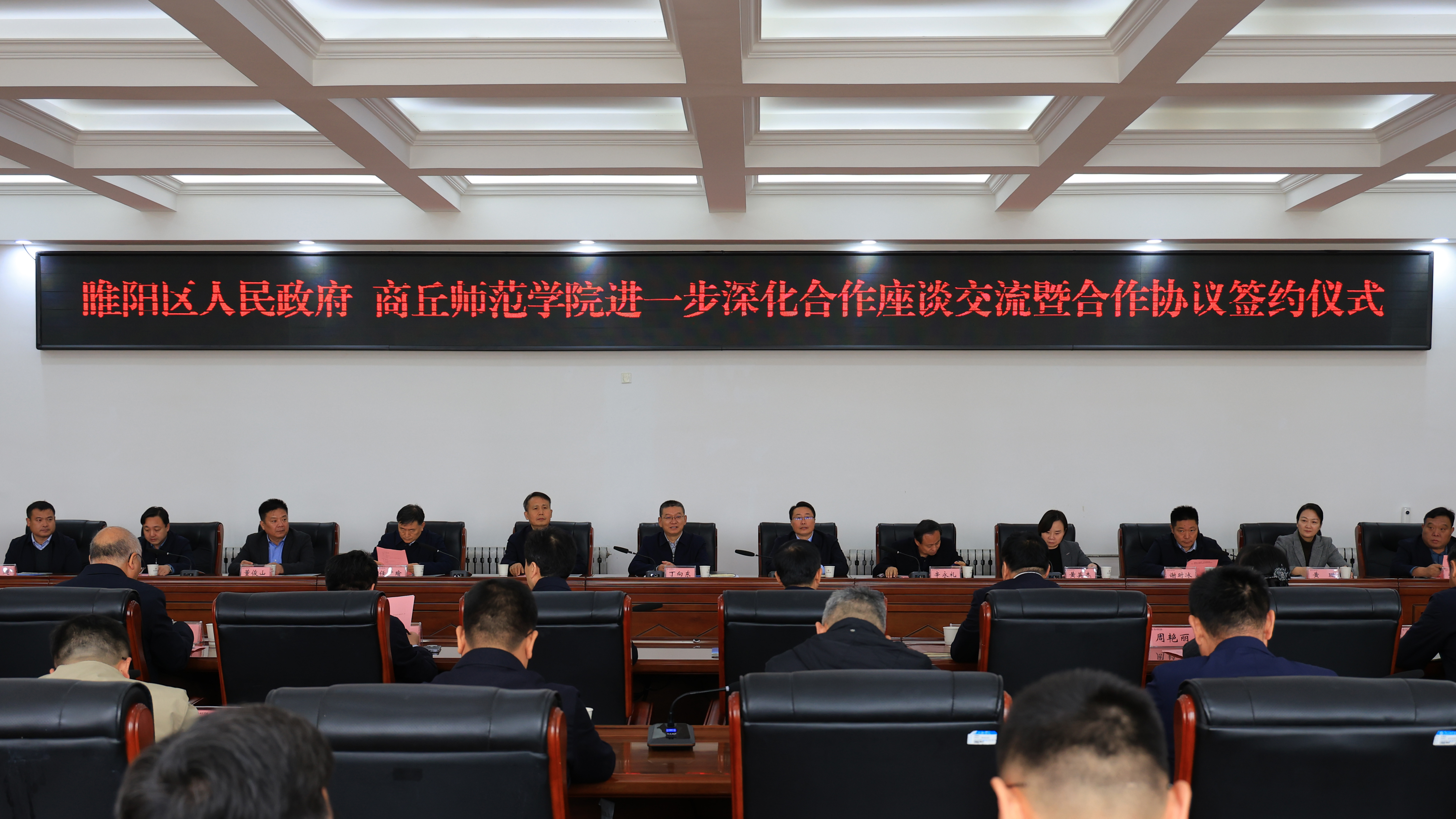 10月22日,必赢官网与睢阳区人民政府举行进一步深化合作座谈交流暨合作协议签约仪式。必赢官网党委书记张尚字、校长陈向炜、校党委副书记吴金山、副校长翟滨,商丘市睢阳区委书记丁向东、区长李长东出席会议。必赢官网有关职能部门,睢阳区委、区人民政府,睢阳区区直单位负责同志参加签约活动。吴金山主持会议。