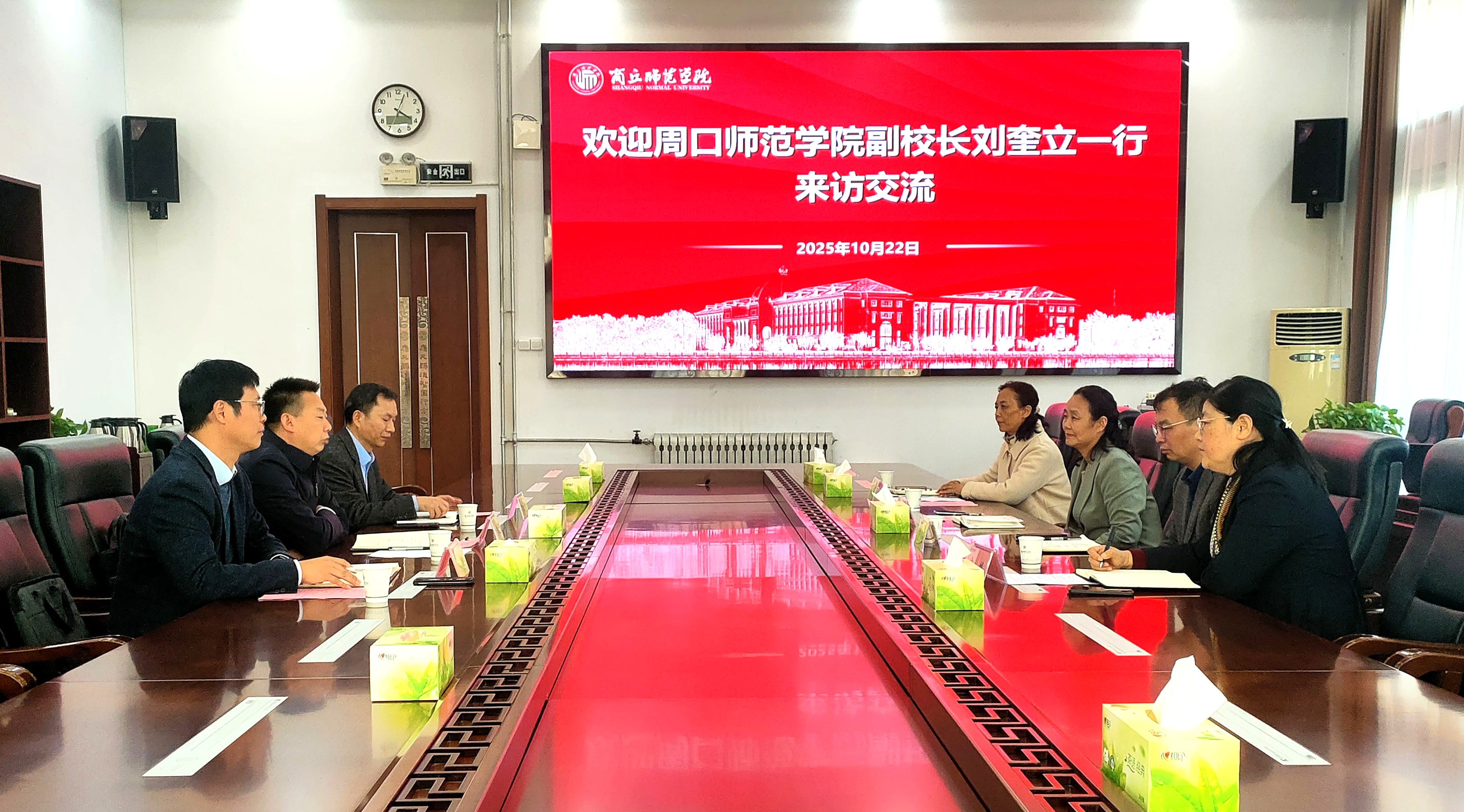 10月22日,周口师范学院副校长刘奎立,人事处处长孙红震、副处长马云朋一行来必赢官网调研。副校长王晓征出席调研座谈会。