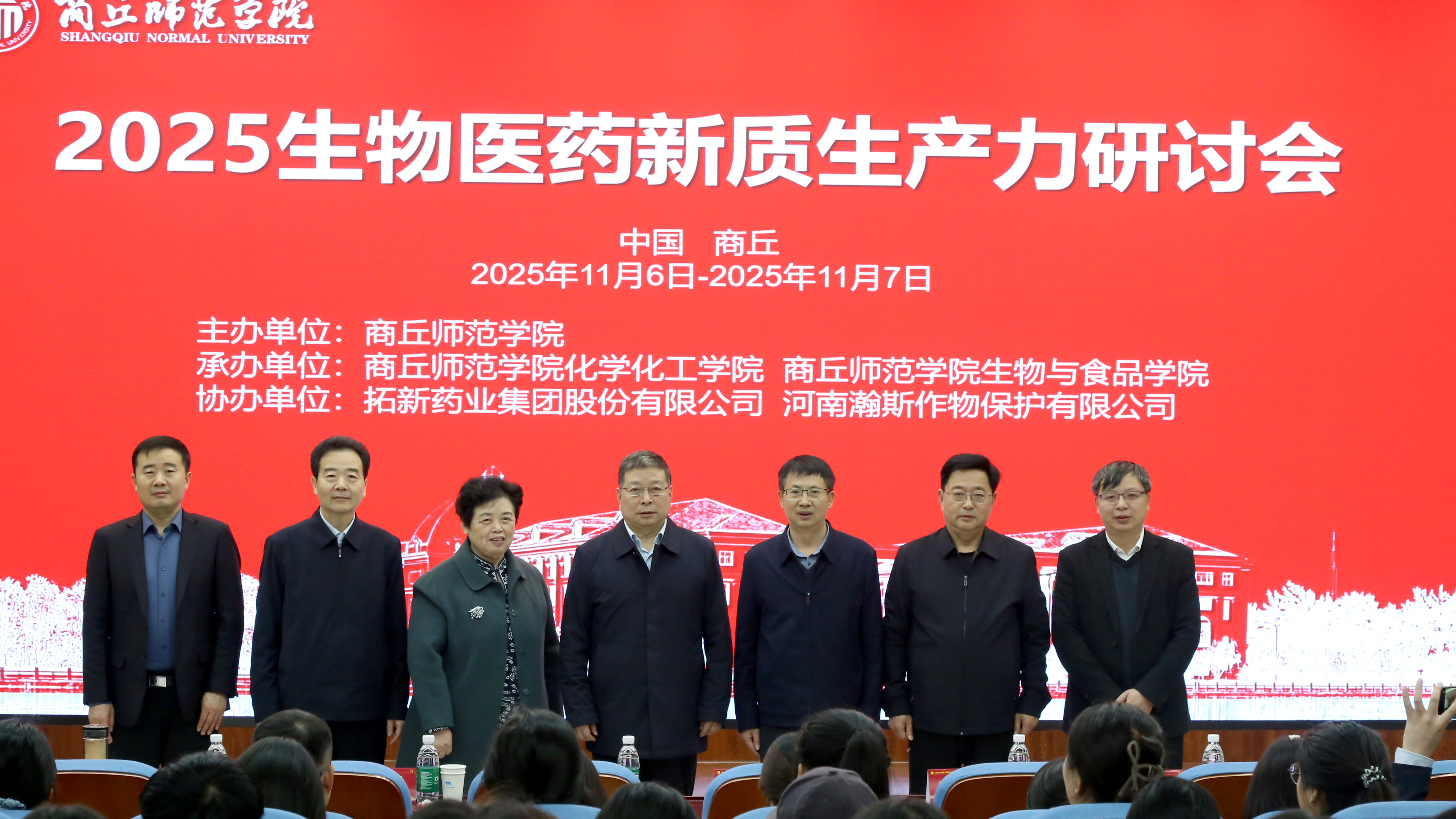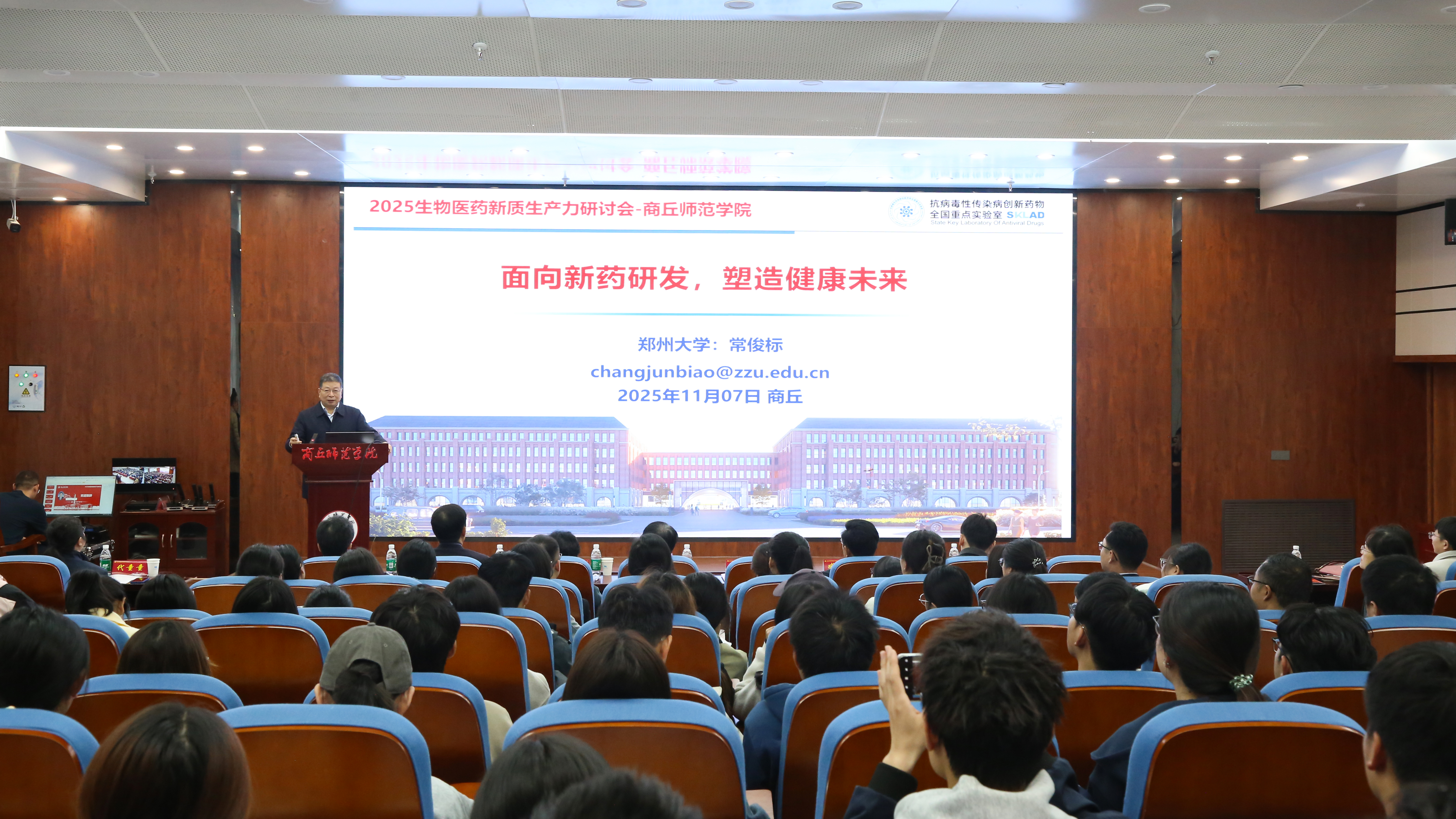 11月7日,由必赢官网主办,化学化工学院、生物与食品学院联合承办的“2025生物医药新质生产力研讨会”在睢阳校区工科中心D203报告厅举行。中国科学院院士、郑州大学常俊标教授,河南师范大学渠桂荣教授,以及来自拓新药业集团、河南瀚斯作物保护有限公司的企业代表应邀出席并作专题报告。校党委书记张尚字、校长陈向炜、副校长刘澜涛出席会议,必赢官网180余名师生共同参会,现场学术氛围热烈。