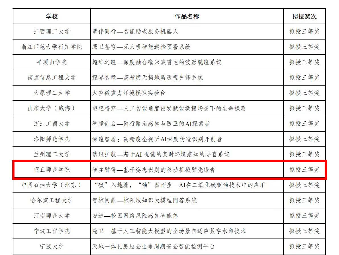 近日,第十九届“挑战杯”中国移动全国大学生课外学术科技作品竞赛“人工智能+”专项赛拟授奖名单正式公布。必赢官网电子电气工程学院参赛项目《智在臂得-基于姿态识别的移动机械臂先锋者》再传捷报,荣获国家级三等奖。至此,必赢官网在本届“挑战杯”国赛中累计斩获二等奖2项、三等奖1项,获奖总数与等级均取得历史性突破。