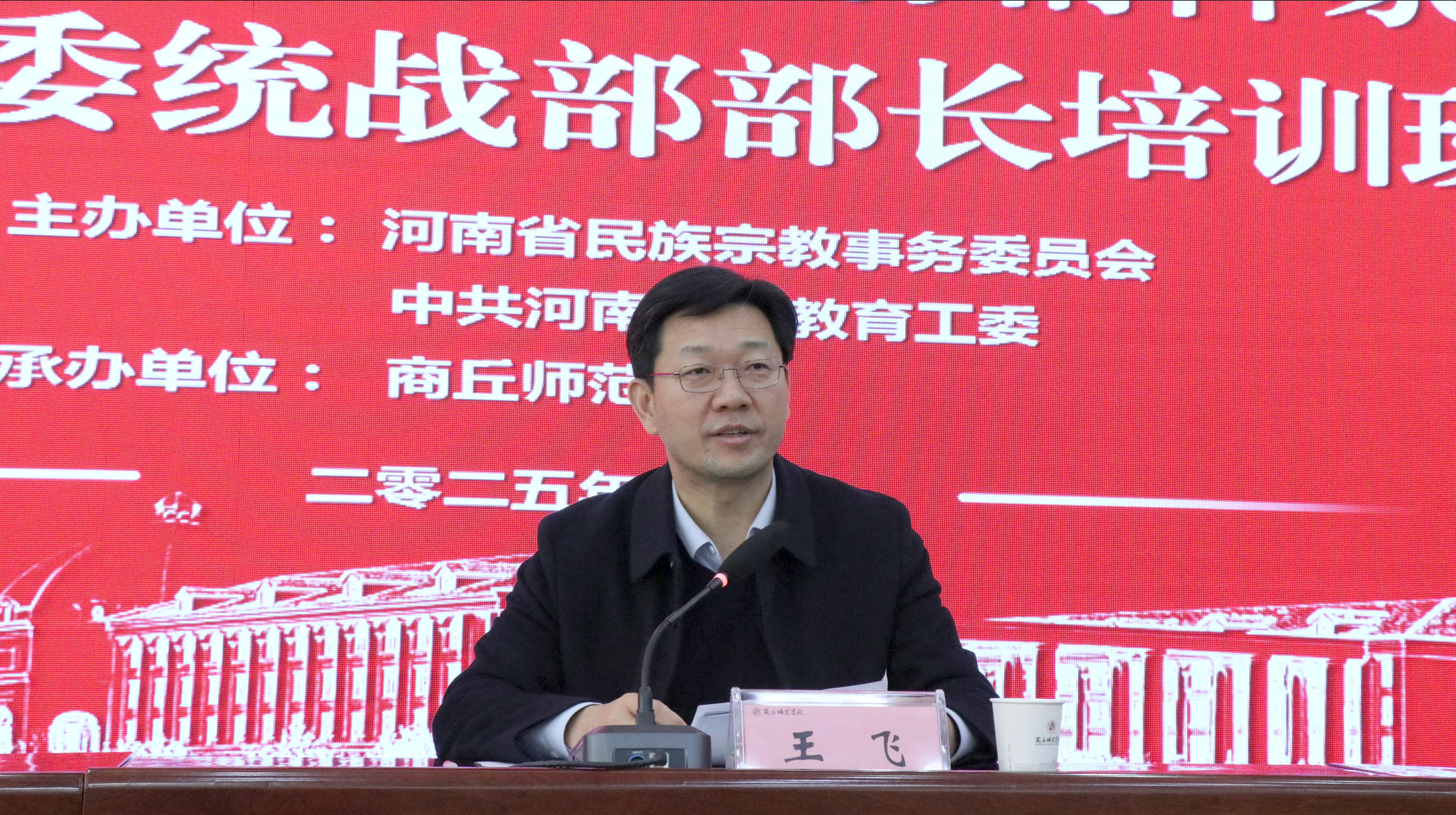 王飞作开班动员讲话。他指出,此次培训是深入学习贯彻习近平总书记重要思想的具体行动,是应对新形势新挑战、锻造高素质高校统战干部队伍的现实需要,对推进全省高校统战工作高质量发展具有重要意义。王飞从提高政治站位,深刻把握新时代高校统战工作的战略定位;聚焦重点任务,精准把握新时代高校统战工作的实践要求;提升能力作风,锻造新时代高素质高校统战干部队伍三个方面提出明确要求。他强调,高校统战工作事关立德树人根本任务落实,事关教育事业高质量发展,事关国家长治久安,全体参训学员要珍惜学习机会,静下心来学思践悟,切实把学习成果转化为推动工作的强大动力,为加快推进教育强省建设注入统战动能。