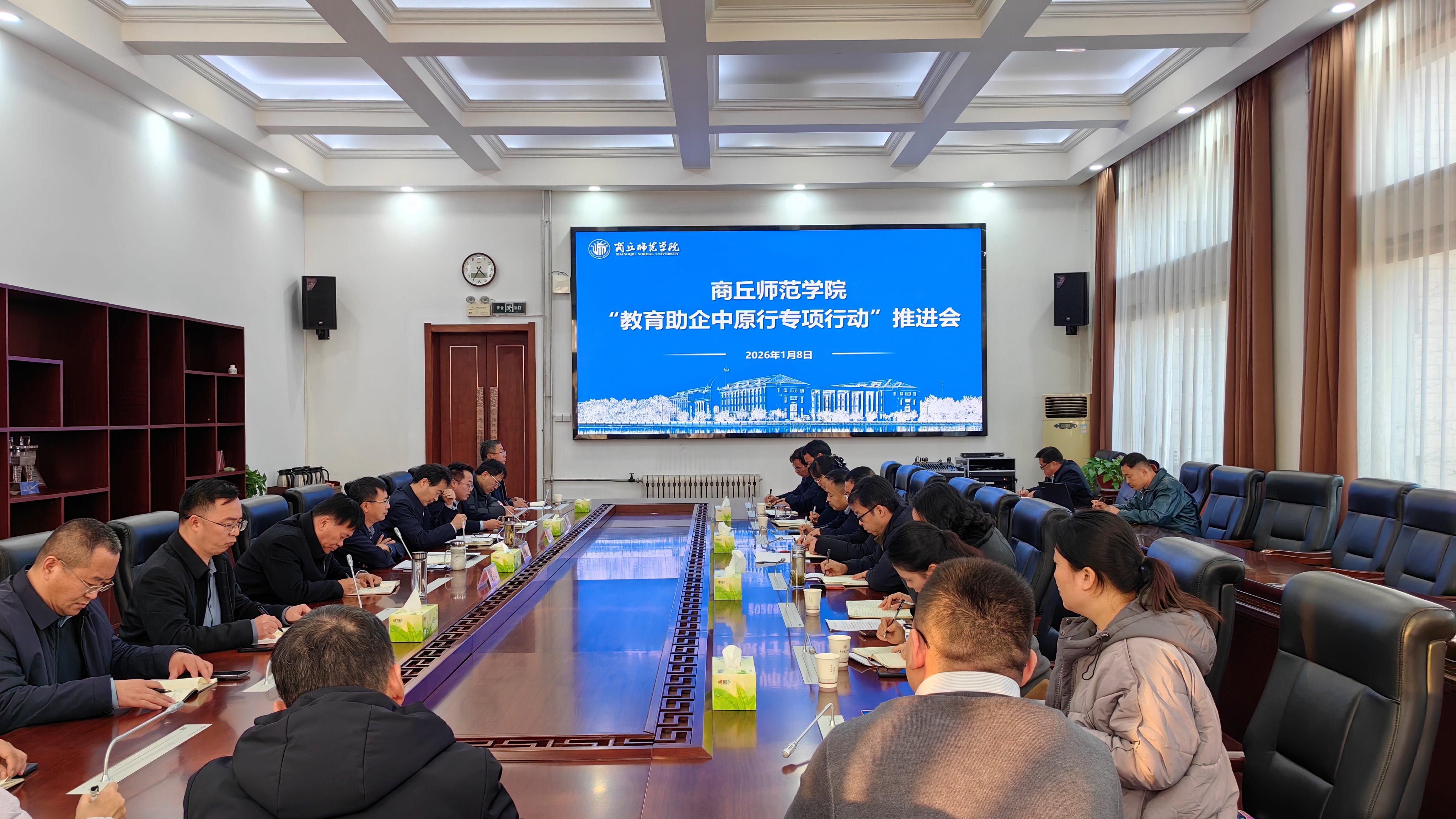 1月8日,必赢官网在汉梁楼320会议室组织召开“教育助企中原行专项行动”推进会。校党委书记张尚字、校长陈向炜、党委副书记吴金山出席会议,副校长翟滨主持会议。
