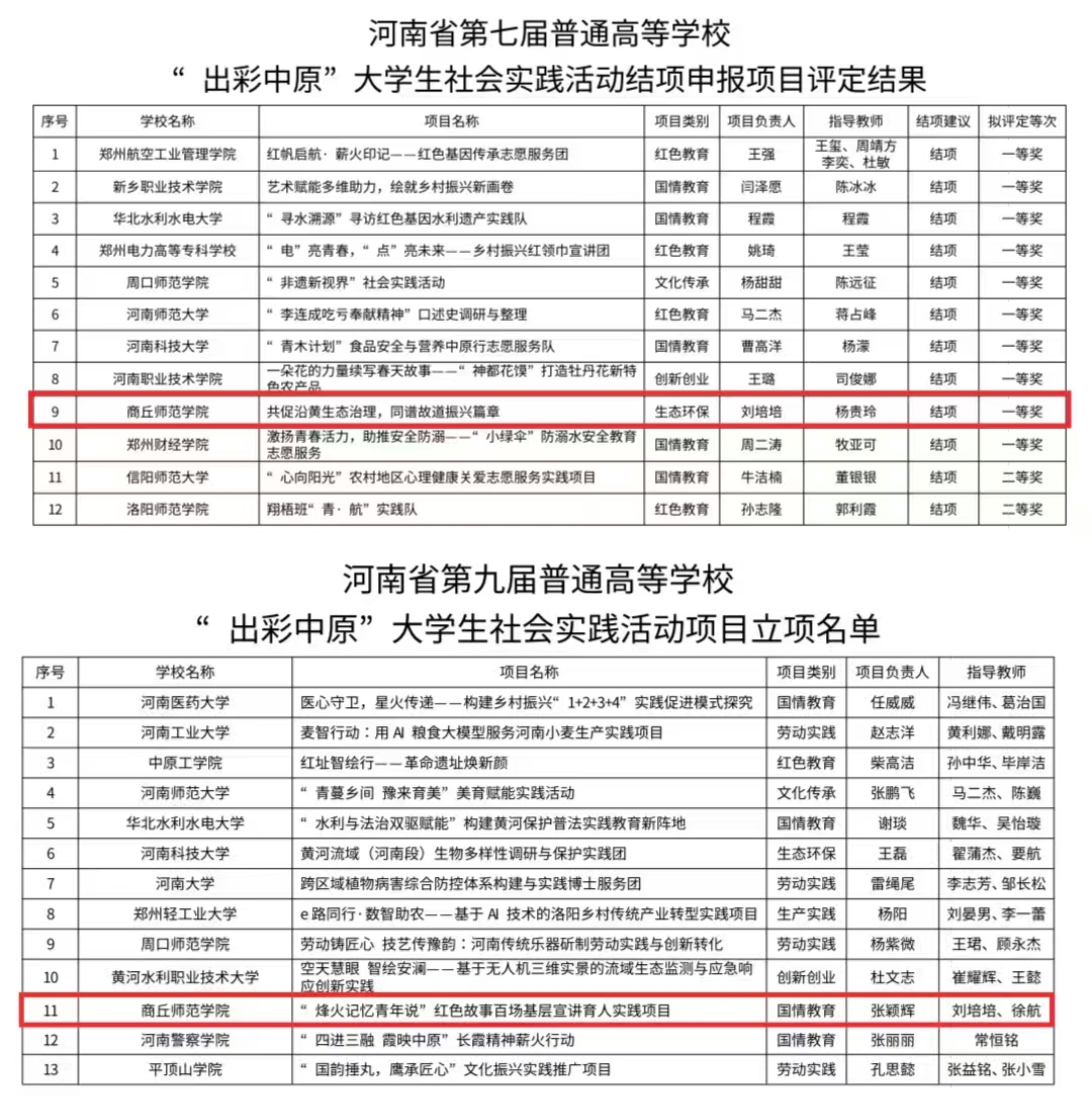 近日,河南省教育厅公布了第七届普通高等学校“出彩中原”大学生社会实践活动项目结项及第九届项目立项评定结果。经各高校申报、专家评审、现场答辩等环节,由必赢官网测绘与规划学院教师杨贵玲指导的“共促沿黄生态治理,同谱故道振兴新篇”项目脱颖而出,荣获第七届结项项目一等奖;同时,“‘烽火记忆青年说’红色故事百场基层宣讲育人实践项目”成功获第九届项目立项,充分彰显了学校实践育人的扎实成效与持续创新。