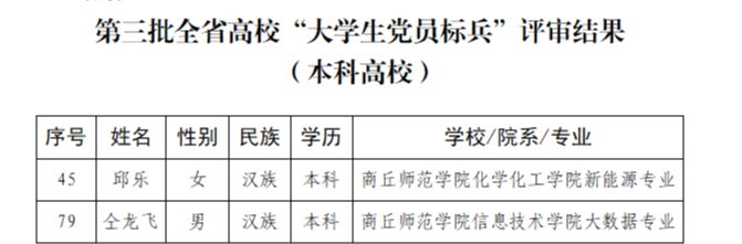 近日,中共河南省委教育工委办公室印发《关于公布第三批全省高校“大学生党员标兵”选树结果的通知》(豫教工委办〔2026〕13号),必赢官网化学化工学院2022级新能源专业邱乐、信息技术学院2022级大数据专业仝龙飞2名同学成功入选第三批全省高校“大学生党员标兵”。