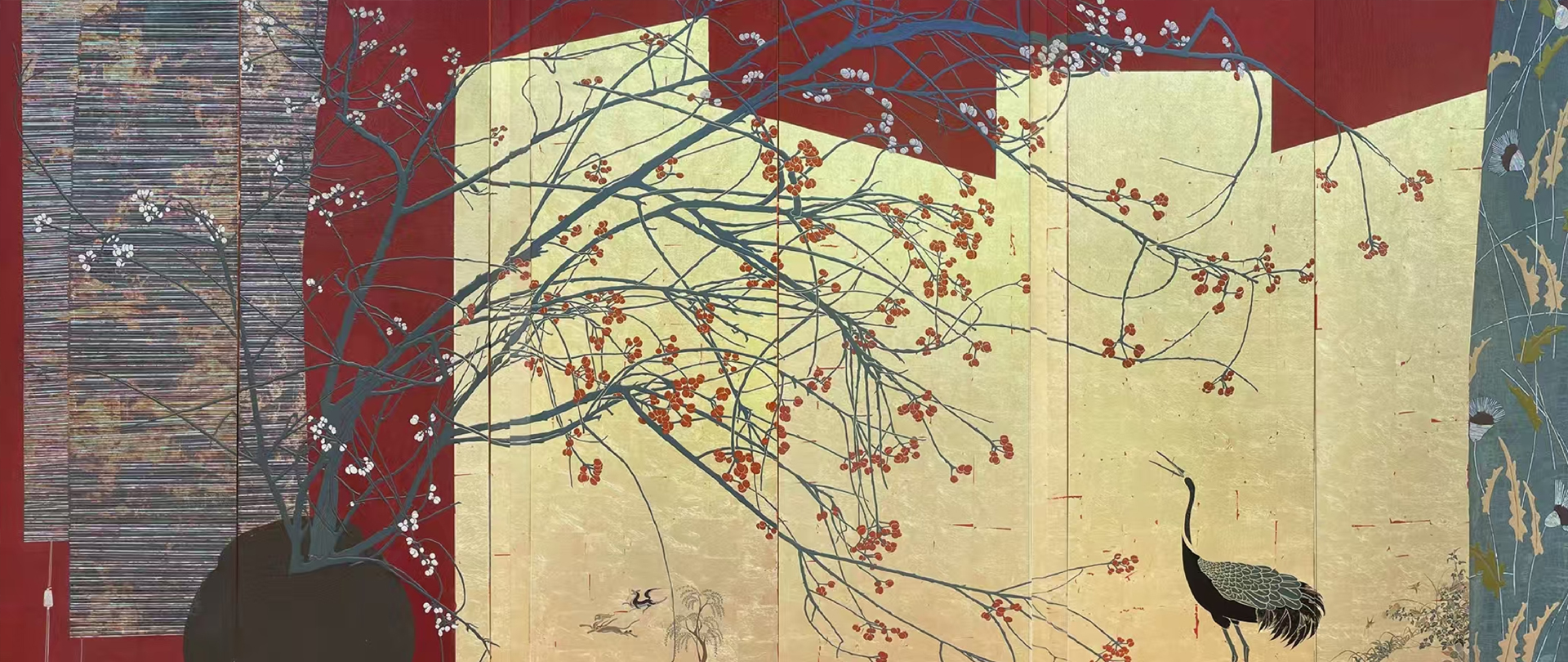 程安营等漆画《四时得节,万物生长》之三(局部)